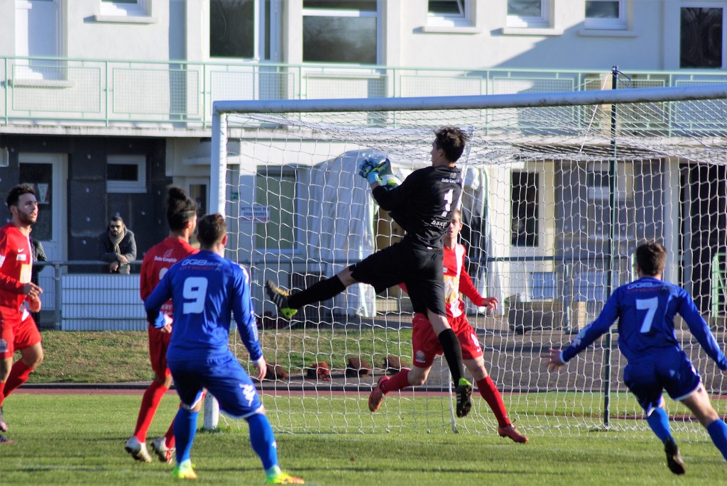 >>> photo >>> dans les buts cosnois, Nicolas Rapaic (ici devant son coéquipier Adelin Lauridant, et sous l'oeil d'Achille Lecoutère -à gauche- et de Valentin Monrose -partiellement masqué-) a du s'employer pour entretenir l'espoir de faire mieux que la partage des points >>>