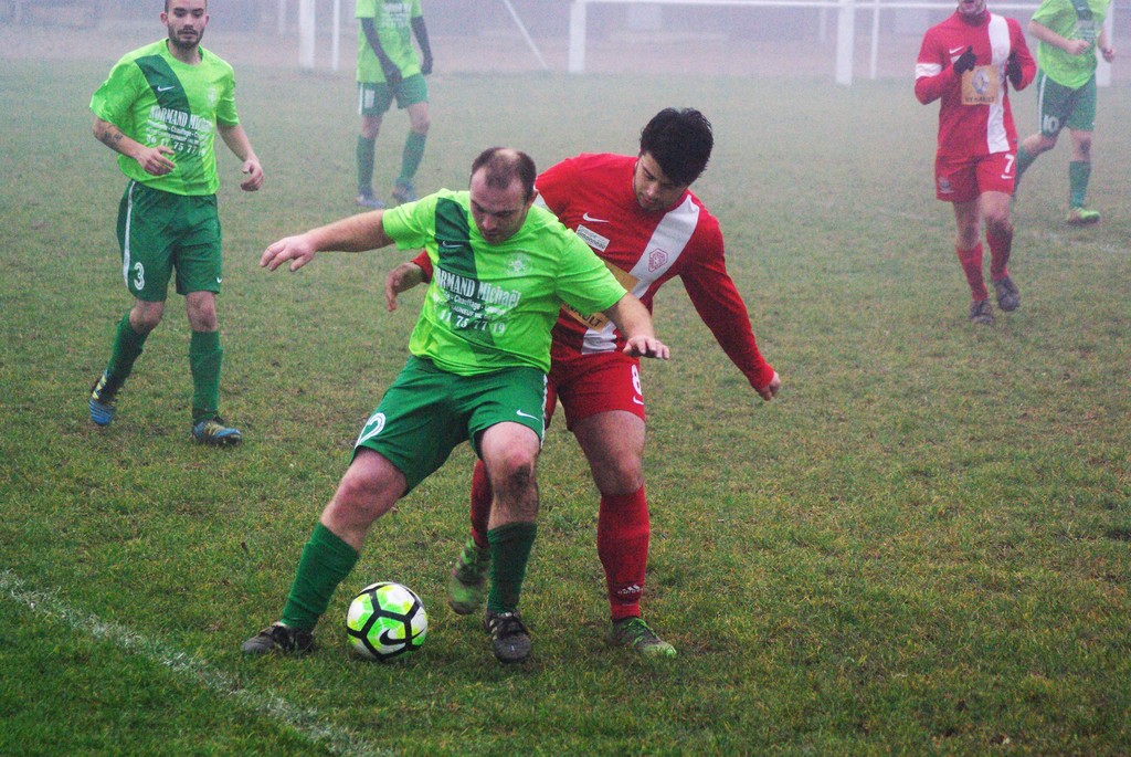 >>> photo >>> le cosnois Kyllian Perrin-Duc (en rouge) mettra un terme à l'éventuel suspens d'un remarquable but à un quart d'heure de la fin >>>