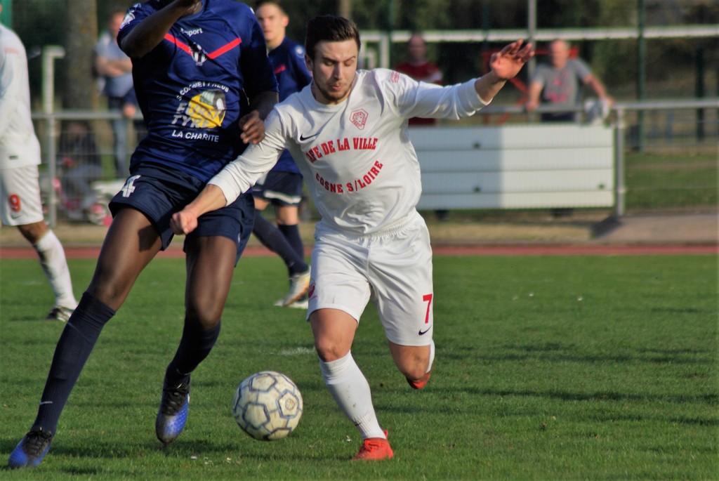 Ramenées à 10 contre 10 à la 21è suite aux exclusions temporaires simultanées du cosnois Jovan Duarte et du charitois Pereira, les occasions ne tarissent pas : d’un côté par James Duarte (32è) ou Matthieu Houzet (36è) ; de l’autre par Ouled (24è) ou El Filali (38è) qu’une parade d’exception de Nicolas Rapaic fait avorter ! Et pas plus de réussite côté charitois quand un but signé Quillard est annulé pour hors-jeu préalable (42è)…