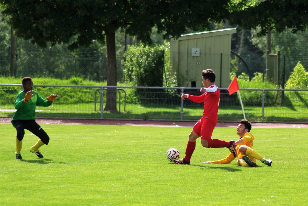 >>> PHOTO >>> L'ouverture du score par Kyllian Haurine (en rouge) n'aura pas suffit >>>