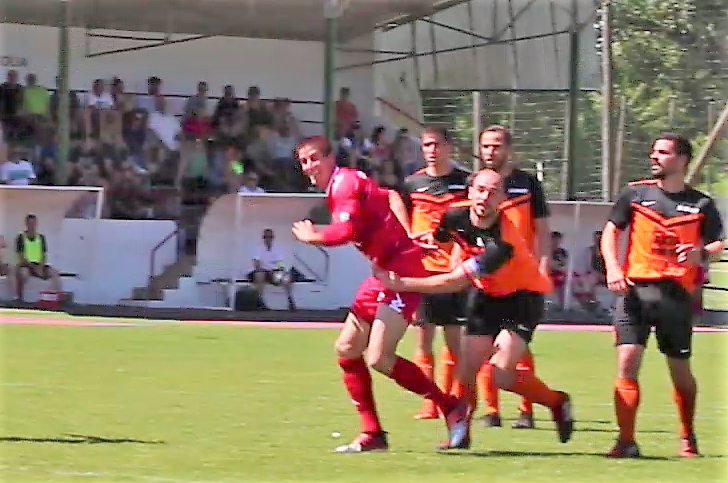 >>> photo : INDISCUTABLE : M. Morel n'hésitera pas à siffler penalty sur cette faute de Thomas Terrien ceinturant Greg Dugué : James Duarte se chargera de la réparation >>> photo issue d'une vidéo signée Christelle C >>>