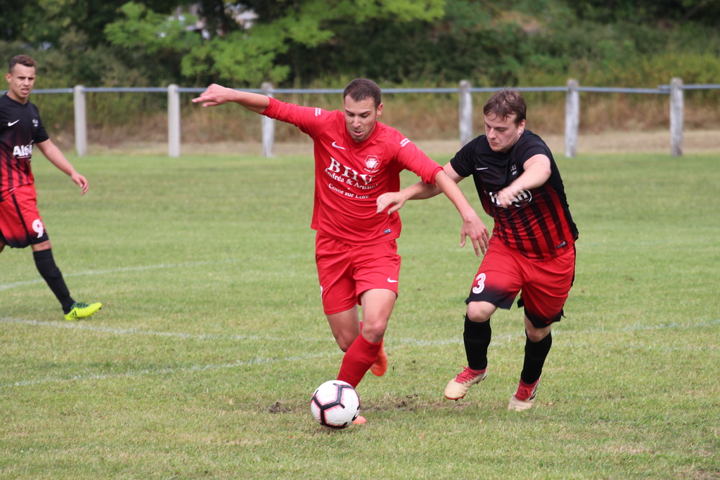 >>> photo >>> L'abattage du néo-cosnois Maxime Reby, transfuge de Savigny (en rouge) aurait mérité mieux que la courte défaite infligée à la seconde réserve cosnoise -photo Ch. C.-)>>>