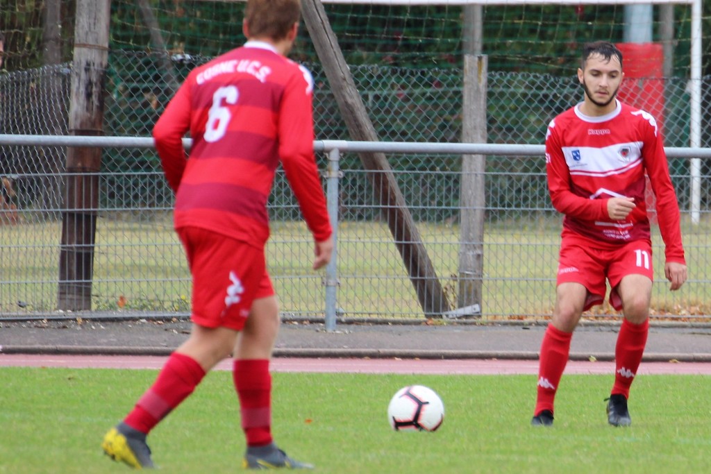 >>> photo >>> En marquant coup sur coup les 2ème et 3ème but cosnois (mi-temps 1-1) en seconde mi-temps, Mathieu Burin (de face) a rendu la tâche des cosnois plus facile >>>