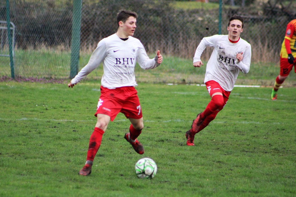 >>> photo >>> 2 buts au crédit de Léo Souchet (balle au pied, devant Stan Weber) pour assoir une victoire logique -photo PP->>>