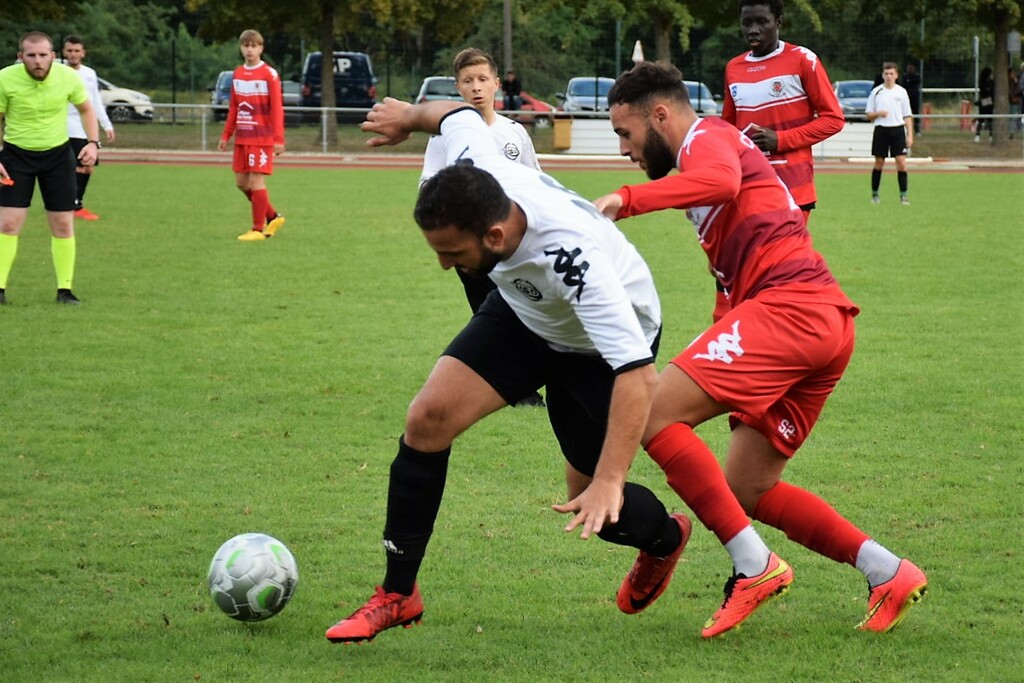 >>> photo >>> L'image est trompeuse : ce n'est pas Dampierre (en noir et blanc) qui a chuté à Raphaël Giraux, mais bien les cosnois (ici, Achille Lecoutère) sur un score sans appel lors du match de R3, Cosne B - Dampierre ! >>>