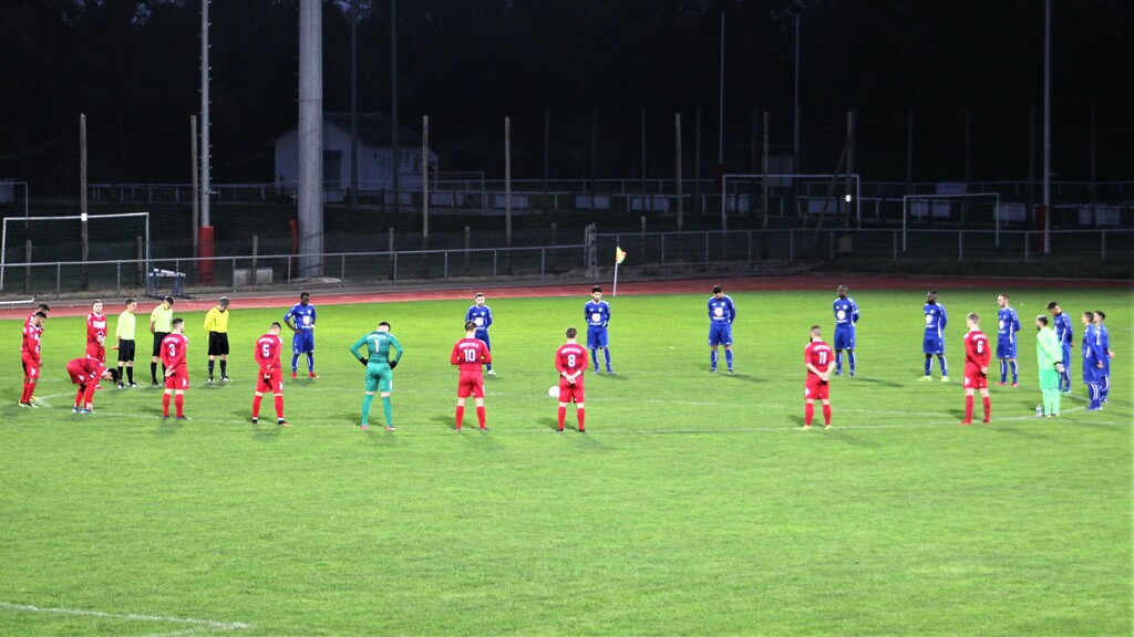 >>> photo >>> comme partout en France, la rencontre a été marquée par un instant solennel en tout début de rencontre pour un hommage demandée par les instances du football >>>