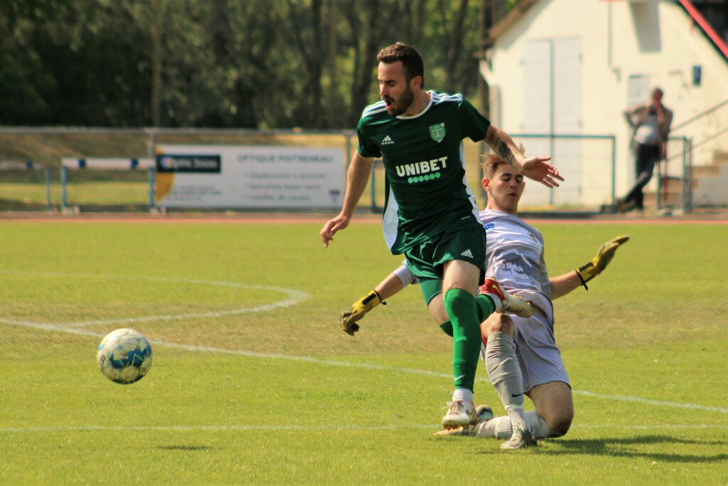 >>> photo >>> après avoir égalisé sur penalty, Cerisiers (en vert) prend l'avantage à dix minutes de la fin >>>