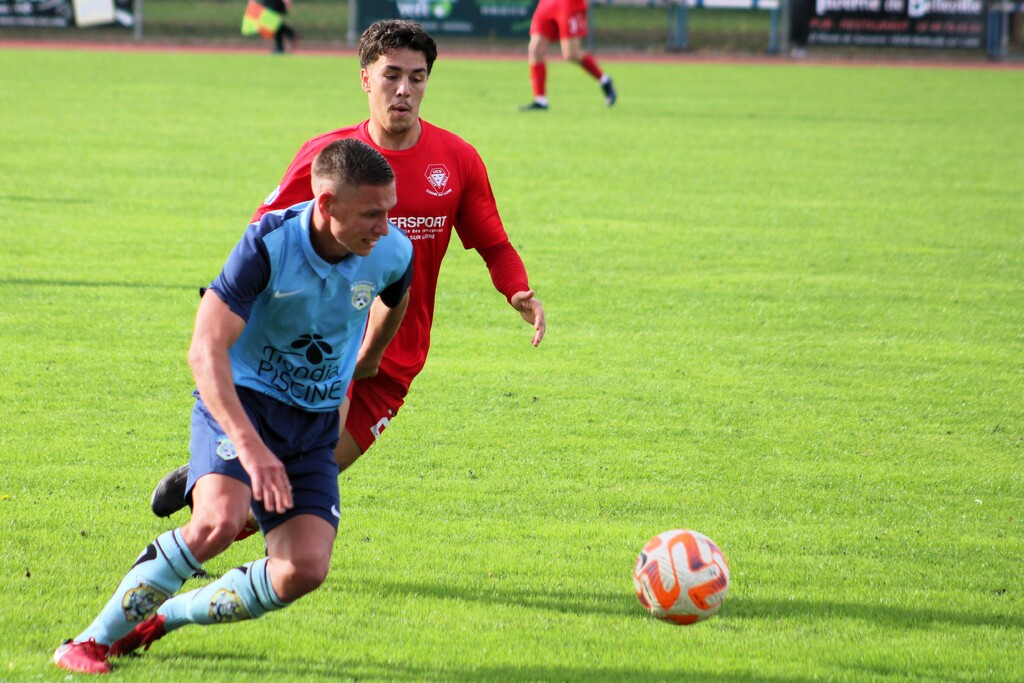 >>> photo >>> Appoigny (Alexis GIL en bleu, et sérieusement blessé à l'épaule en fin de première période, à la suite d'une chute) prendra le dessus sur Cosne B (Sonny HURTAULT en rouge), 3-0 en Régional 3 >>>