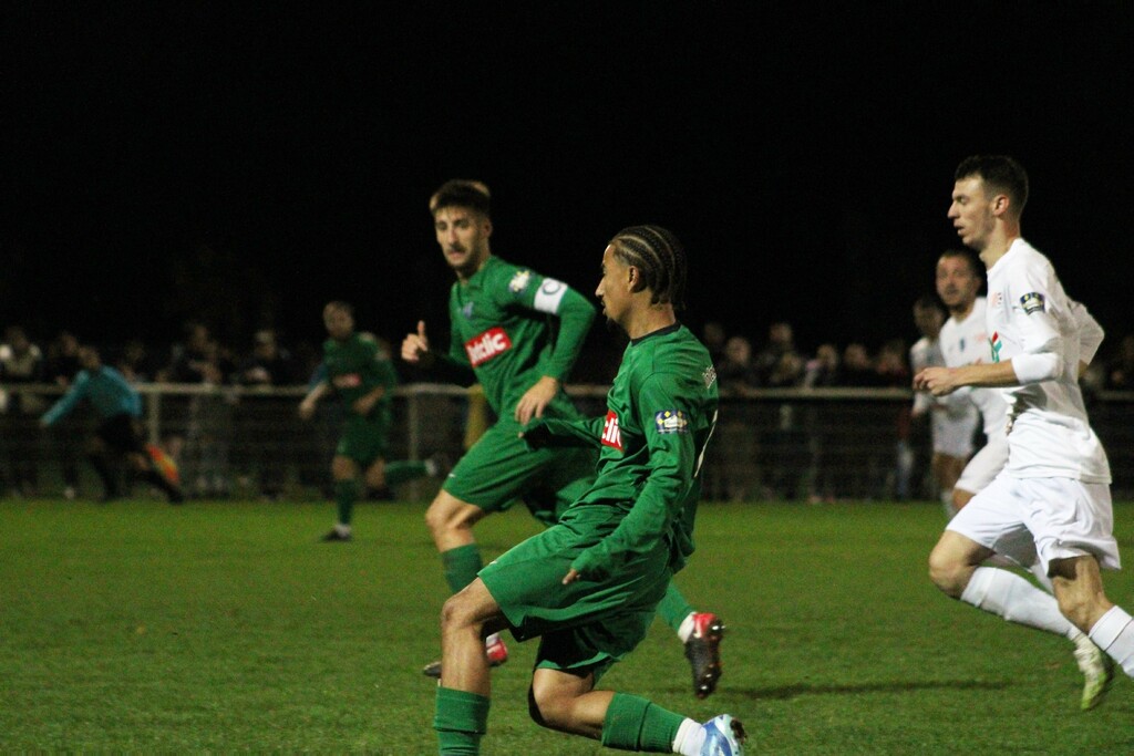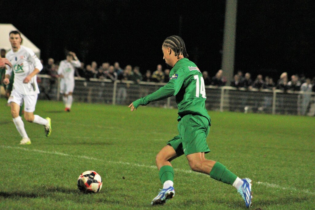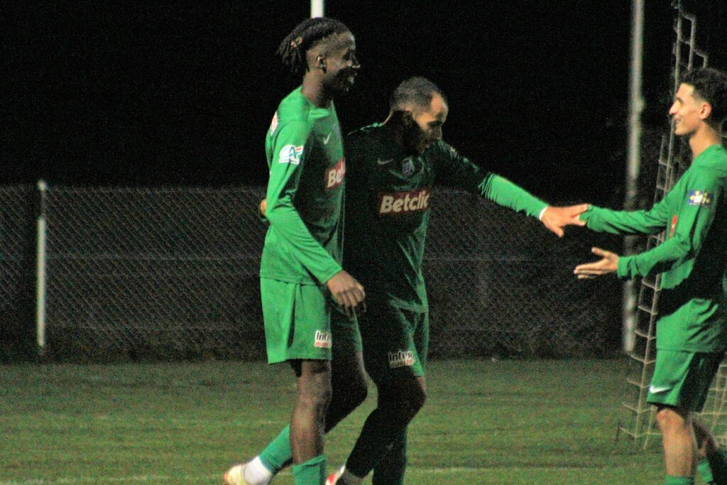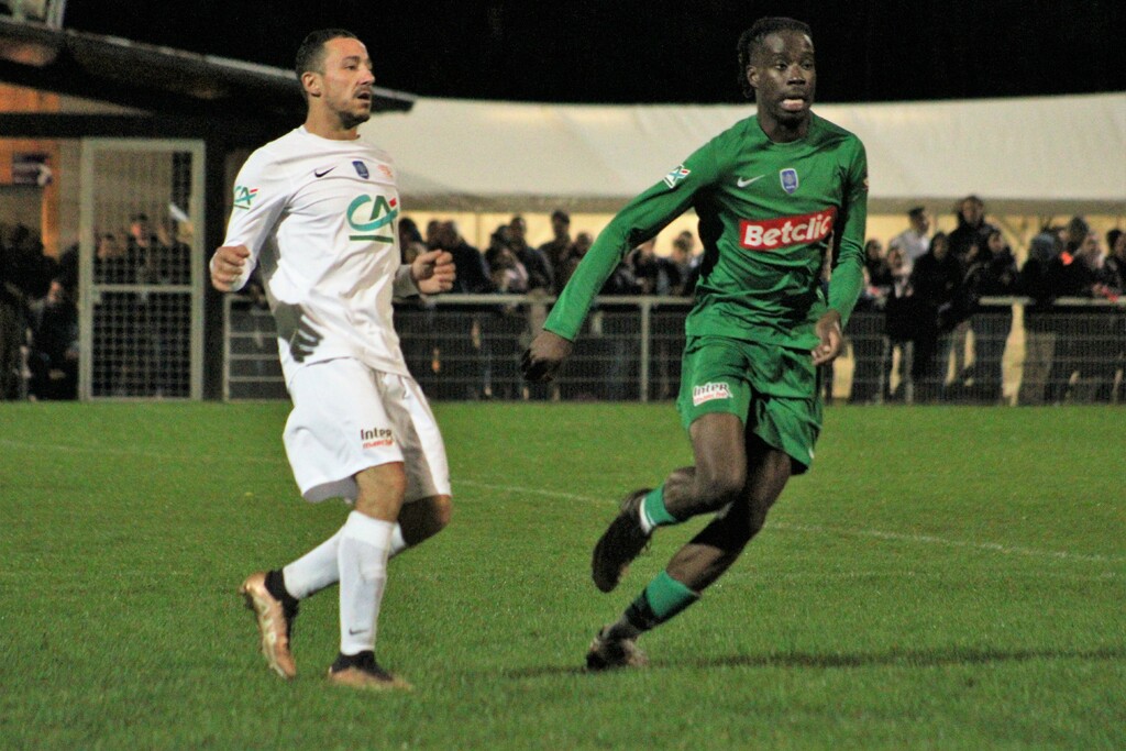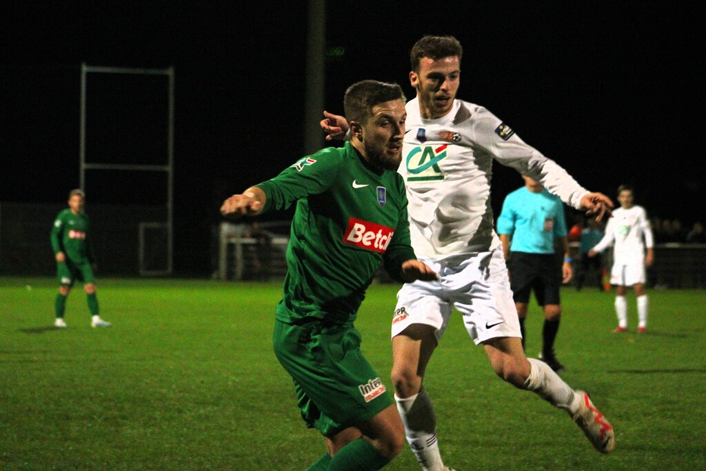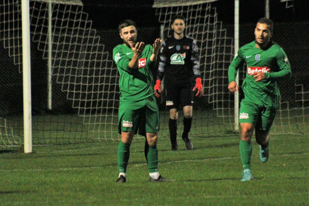 >>> photo >>> Coupe de France : Cosne et James Duarte (en vert) avec un doublé aux "Coteaux de Seille" (Jura), qualifient les nivernais pour le 7ème tour de Coupe de France (1er tour National) >>>
