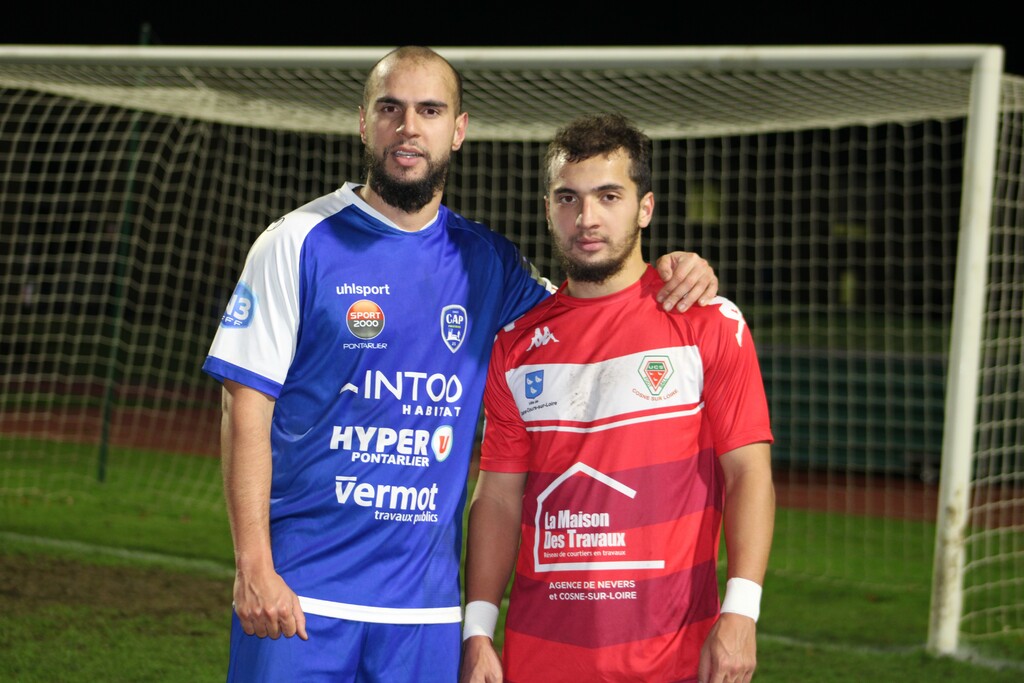 >>> photo >>> FRÈRES ET ADVERSAIRES : Les frères HATTAB se sont ainsi retrouvés l'espace d'un match : Sabri en maillot bleu de Pontarlier et Djibrill en maillot rouge cosnois >>>