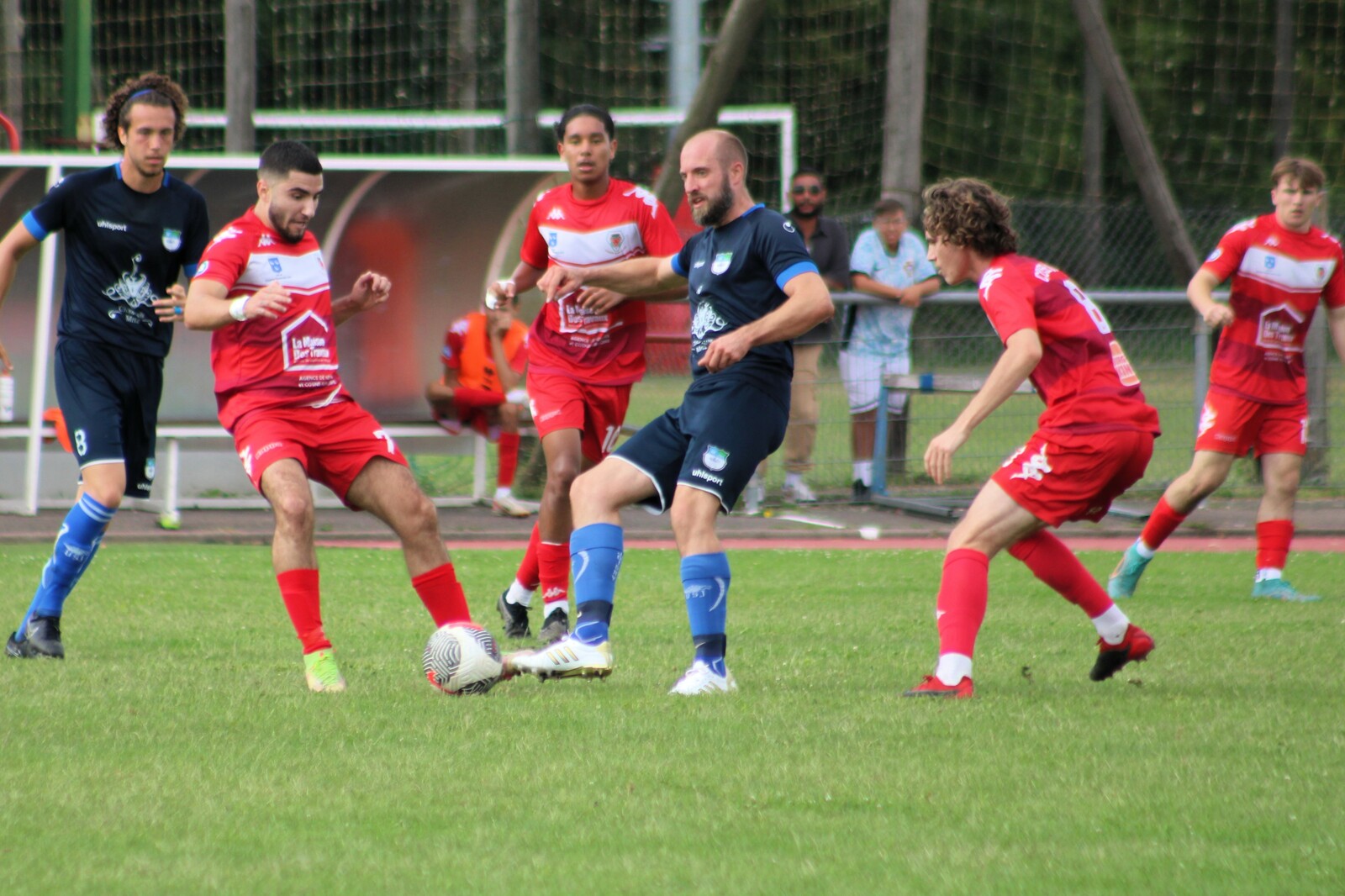 >>> En régional 3, les cosnois (en rouge) n'ont pas tergiversé face à Joigny (en bleu) >>>