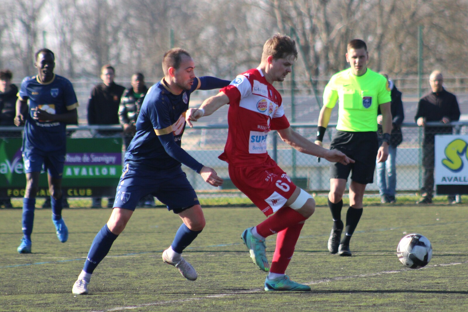 Avallon (terrain synthétique). Avallon - Cosne : 1-5 (0-3). Arbitre : M. Gil. Buts : pour Cosne, Gassama (11è), Touré (22è), Grébert (33è et 67è), Berthé (73è) ; pour Avallon, Ahcene (83è). Avertissements : aucun. Autres sanctions : Aucune. Cosne : Pronzola, Decombes, Jeaunet, Gassama, Touré, Lecomte, Duarte, Grebert, Ongadia, Mondésir, Moueffek. Entrés en jeu : Kalozafy (46è), Berthé (61è) et Hirt (65è). |