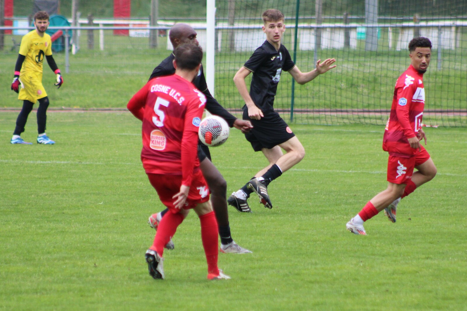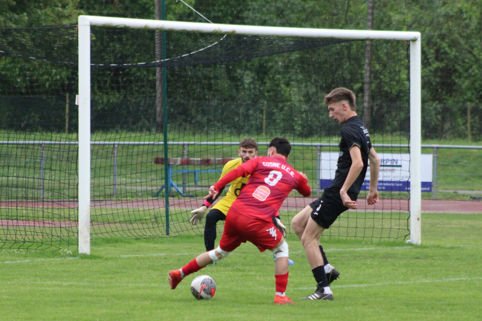 >>> photo >>> Nettement renforcée par 3 joueurs habituels de N3, Nicolas Vannier, Mathis Kalozafy et Mattéo Berthé (photo) auteur d'un triplé), la R3 cosnoise s'est donnée un peu d'air face à Selongey C >>>