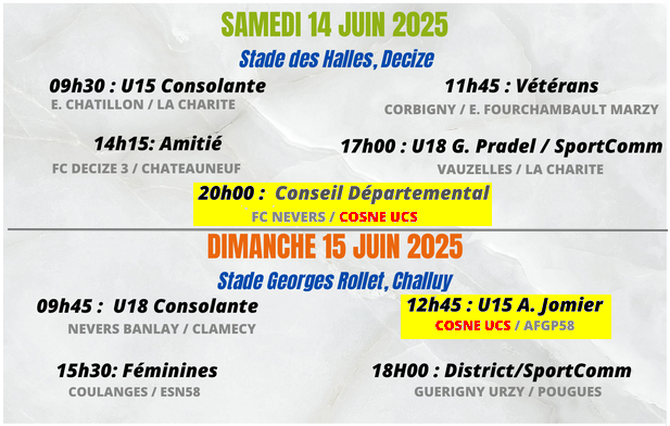 >>> Ne restent, pour terminer la saison, que 2 finales de Coupe Départementale pour les cosnois >>>