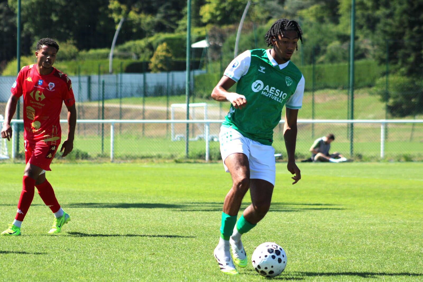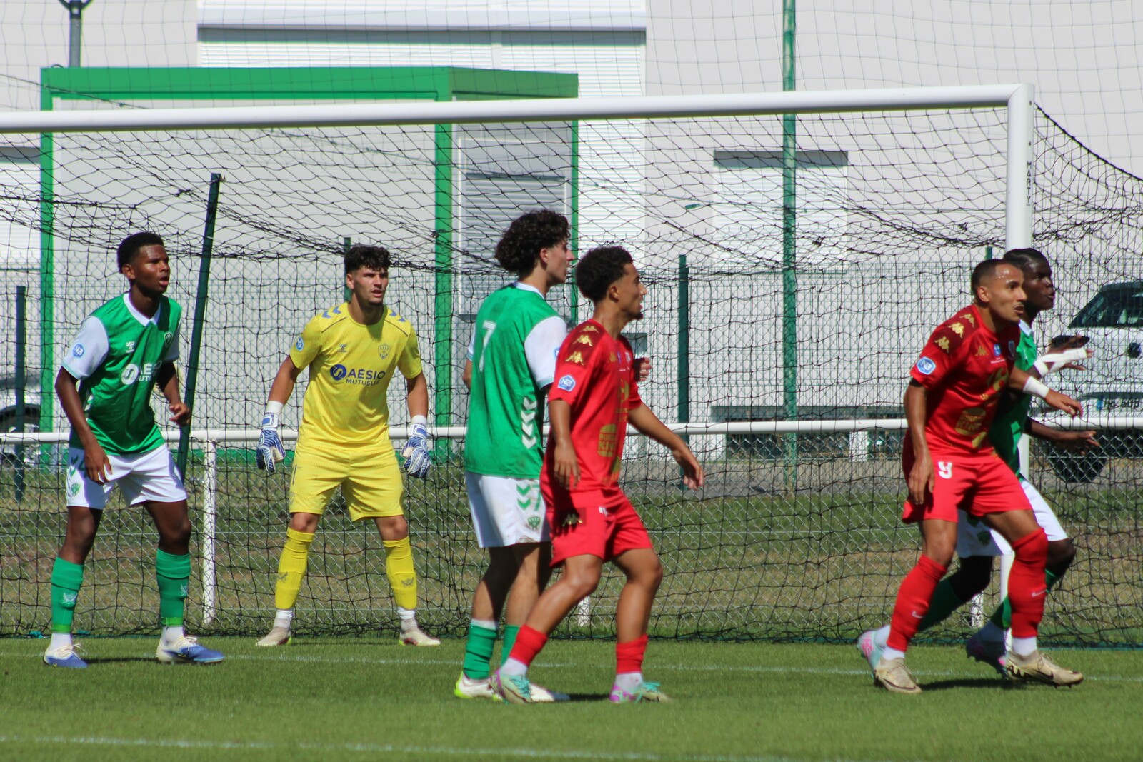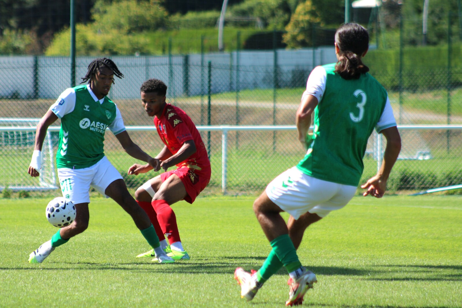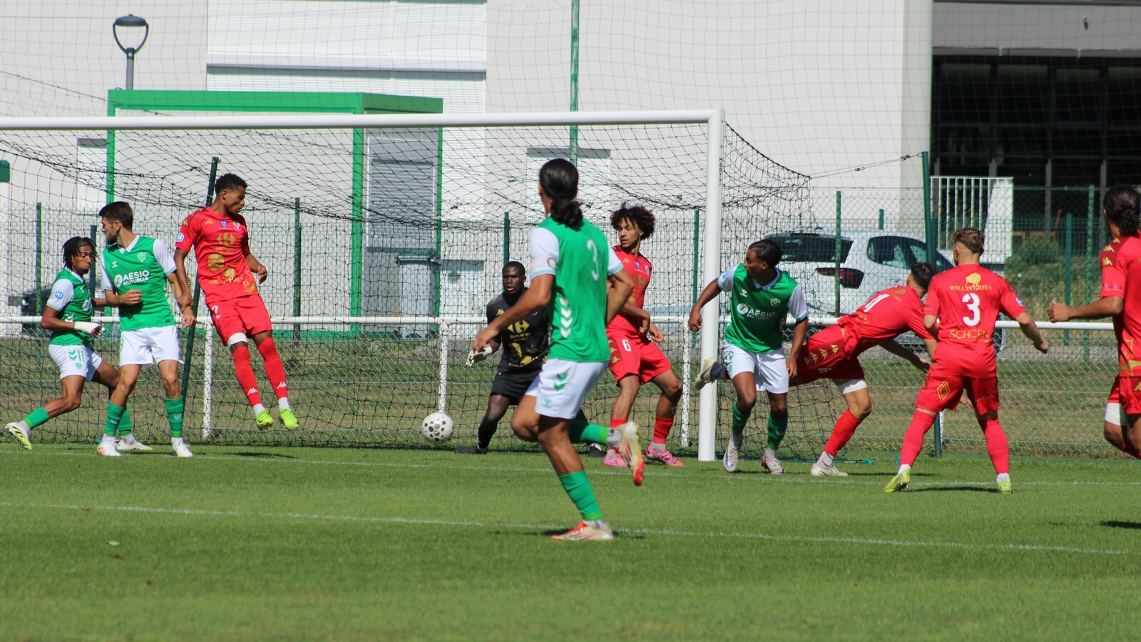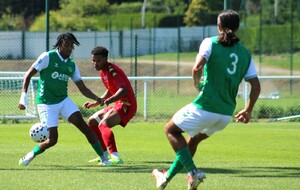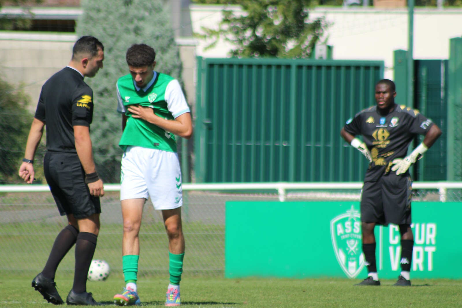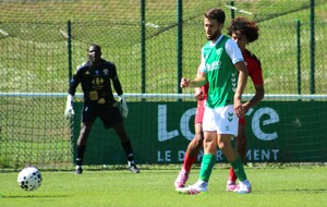 LA FICHE DU MATCH : L'Étrat (stade Aimé Jacquet) : arbitrage de M.Benkada (Haute-Loire). Buts pour St Étienne B : Jibril OTHMAN (3è), Maedine MAKHLOUFI (50è, 62è et 77è) ; pour Cosne, Mohamed MOUEFFEK (8è sur penalty). Avertissements à St Étienne : Mouton (45è), Cheikh (53è), Hornech (80è) ; à Cosne, Jeaunet (15è), Berthé (83è). St Étienne B : Noa DELACROIX, Strahinja STOJKOVIC (Ewan HORNECH, 62è), Mahedine MAKHLOUFI (cap), Axel DODOTE, Kevin PEDRO, Luan GADEGBEKU (Yanis MIMOUN, 62è), Valentin DEPALLE, Jules MOUTON, Jibril OTHMAN (Noah MOULIN, 78è), Nadir EL JAMALI (Medhy LUTIN-ZIDÉE, 67è), Issam CHEIKH. Cosne : DIAZAYAKANA Nsimba, ALIMAT-VIGNAT Alban, JEAUNET Steven, BENABED Faouzi, TOURÉ Abdel (cap), VANNIER Nicolas, DUARTE James (ONGADIA Junior, 67è), LECOMTE Kolya, ADOUL Luc (BERTHÉ Mattéo, 67è), KALOZAFY Mathis (DIAWARA Elhadji, 77è), MOUEFFEK Mohamed (SOUCHET Léo, 90è). |