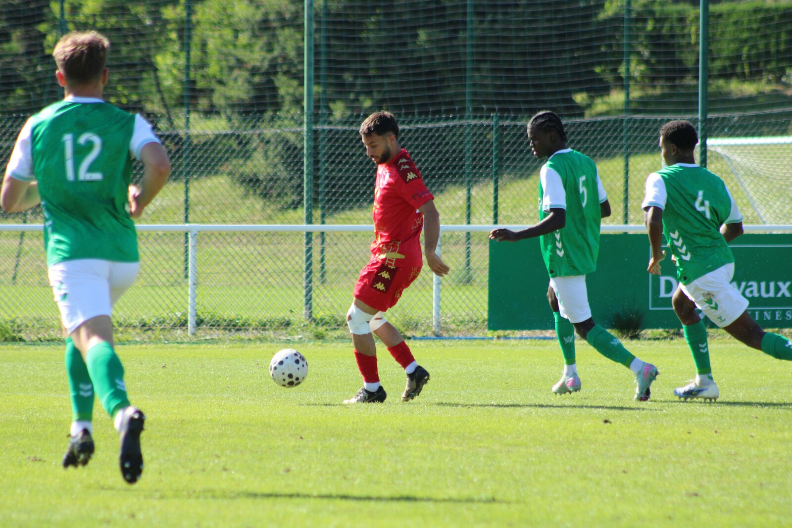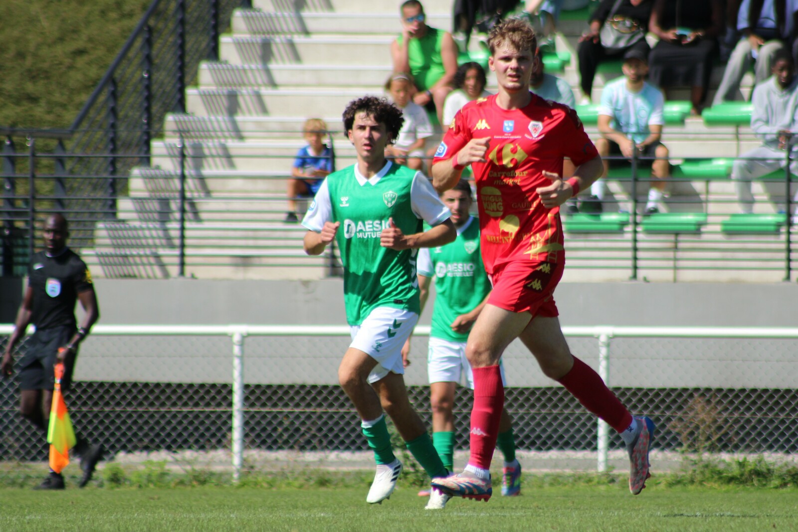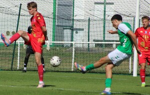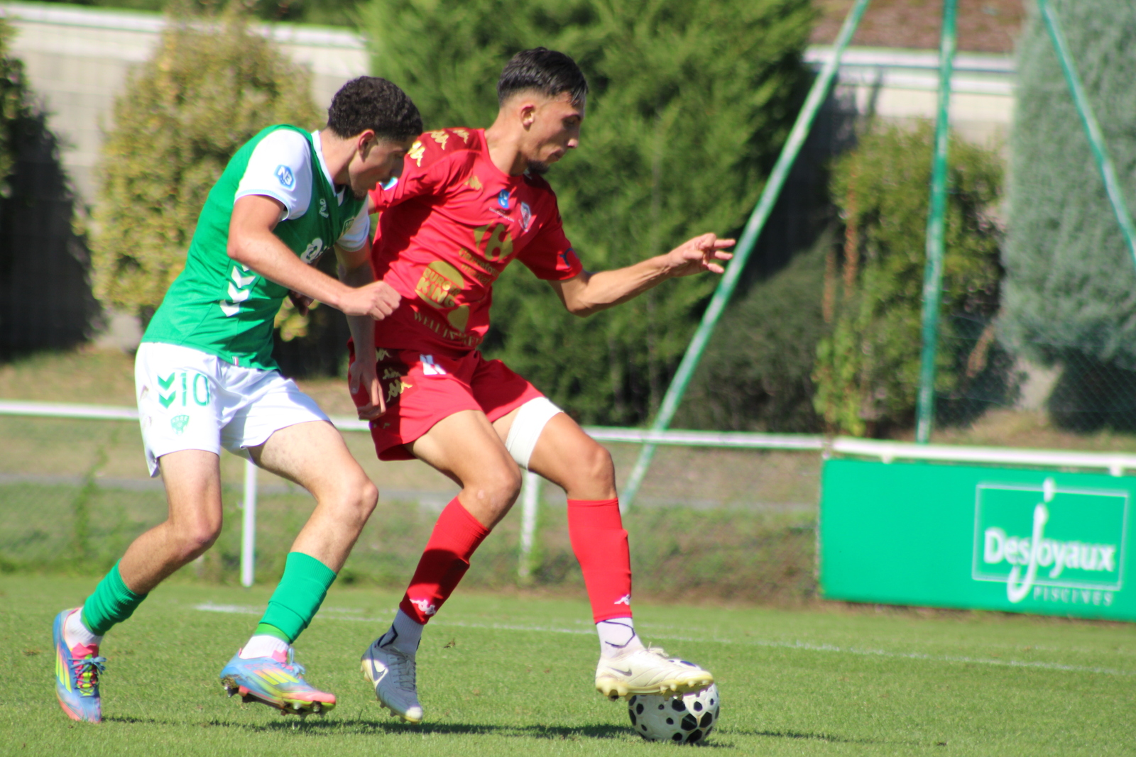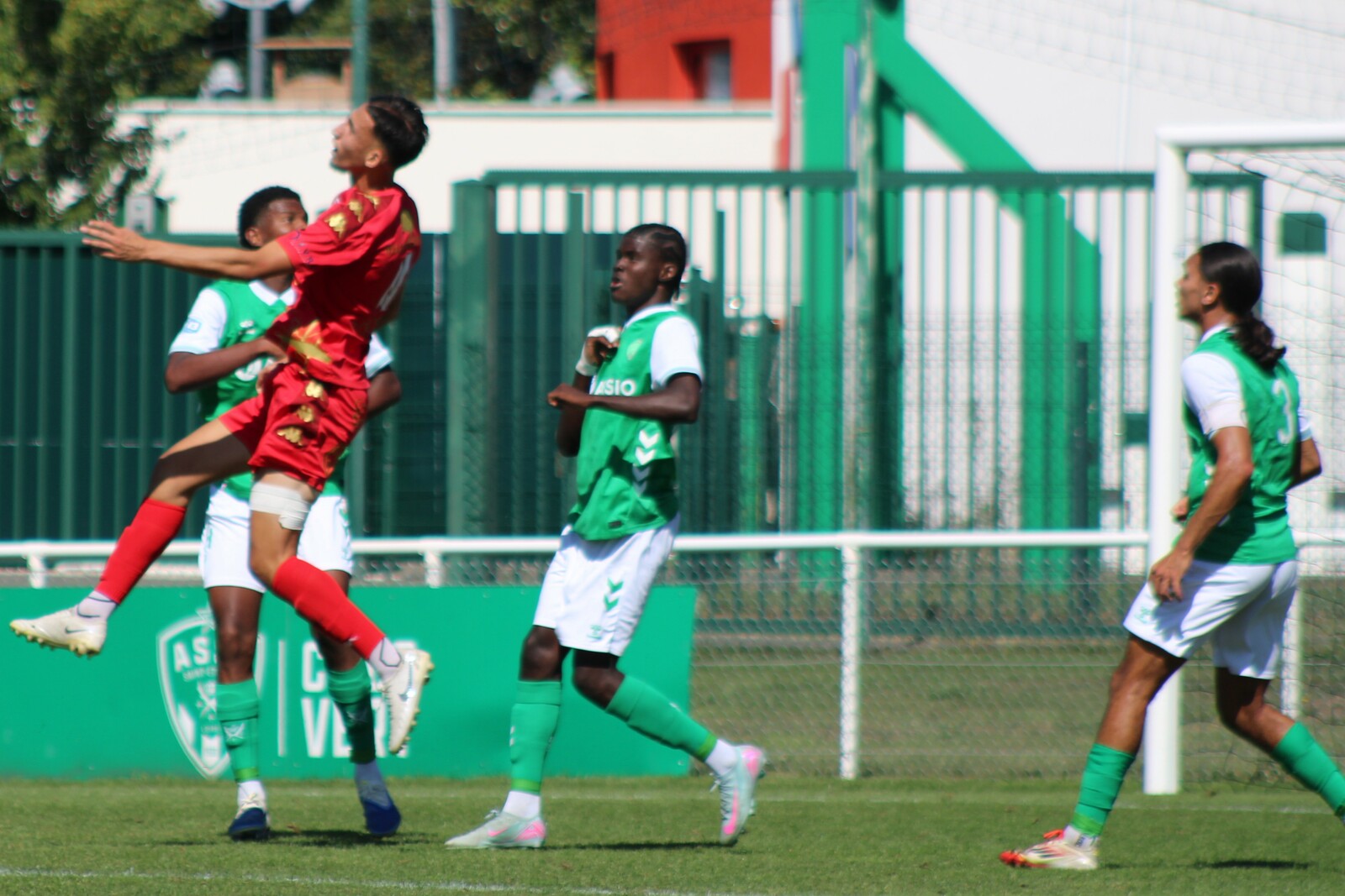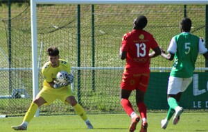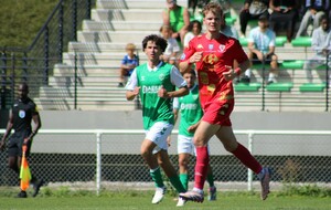 LA FICHE DU MATCH : L'Étrat (stade Aimé Jacquet) : arbitrage de M.Benkada (Haute-Loire). Buts pour St Étienne B : Jibril OTHMAN (3è), Maedine MAKHLOUFI (50è, 62è et 77è) ; pour Cosne, Mohamed MOUEFFEK (8è sur penalty). Avertissements à St Étienne : Mouton (45è), Cheikh (53è), Hornech (80è) ; à Cosne, Jeaunet (15è), Berthé (83è). St Étienne B : Noa DELACROIX, Strahinja STOJKOVIC (Ewan HORNECH, 62è), Mahedine MAKHLOUFI (cap), Axel DODOTE, Kevin PEDRO, Luan GADEGBEKU (Yanis MIMOUN, 62è), Valentin DEPALLE, Jules MOUTON, Jibril OTHMAN (Noah MOULIN, 78è), Nadir EL JAMALI (Medhy LUTIN-ZIDÉE, 67è), Issam CHEIKH. Cosne : DIAZAYAKANA Nsimba, ALIMAT-VIGNAT Alban, JEAUNET Steven, BENABED Faouzi, TOURÉ Abdel (cap), VANNIER Nicolas, DUARTE James (ONGADIA Junior, 67è), LECOMTE Kolya, ADOUL Luc (BERTHÉ Mattéo, 67è), KALOZAFY Mathis (DIAWARA Elhadji, 77è), MOUEFFEK Mohamed (SOUCHET Léo, 90è). |
