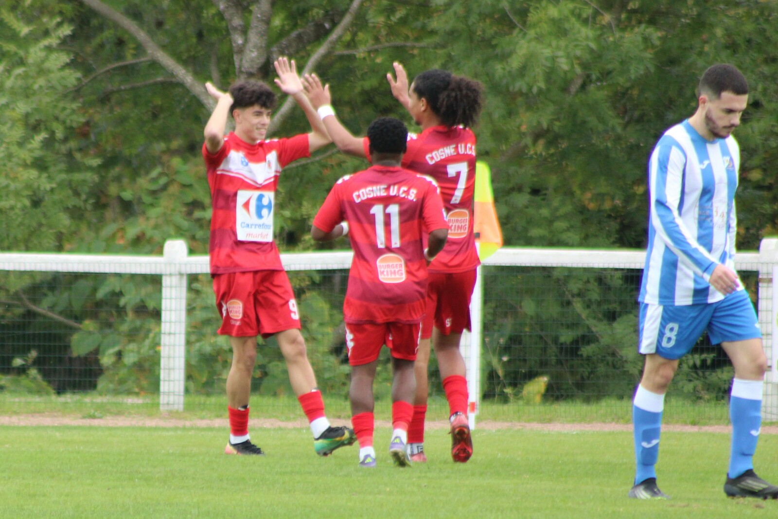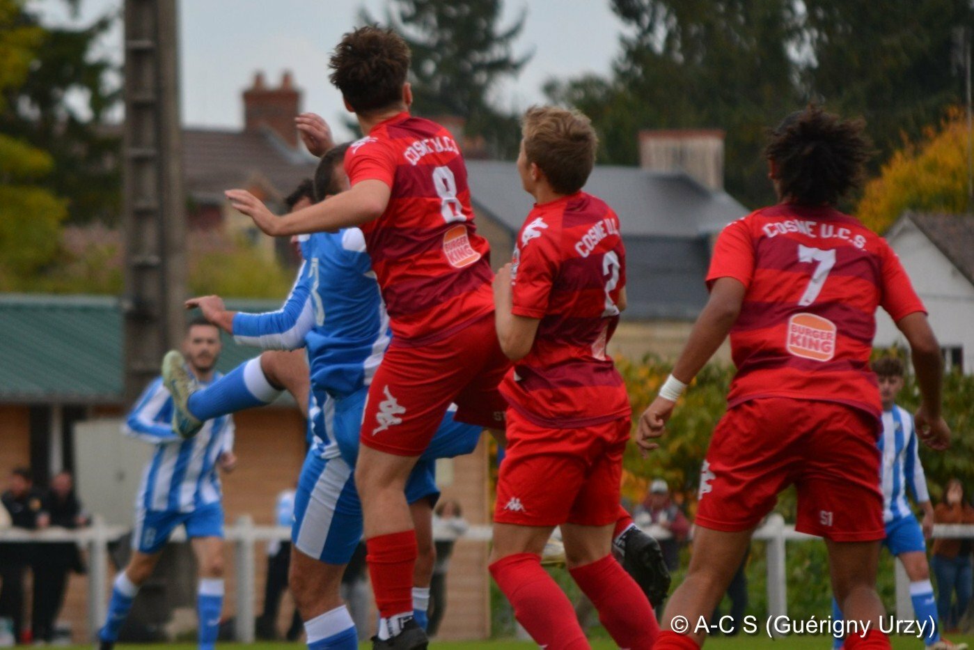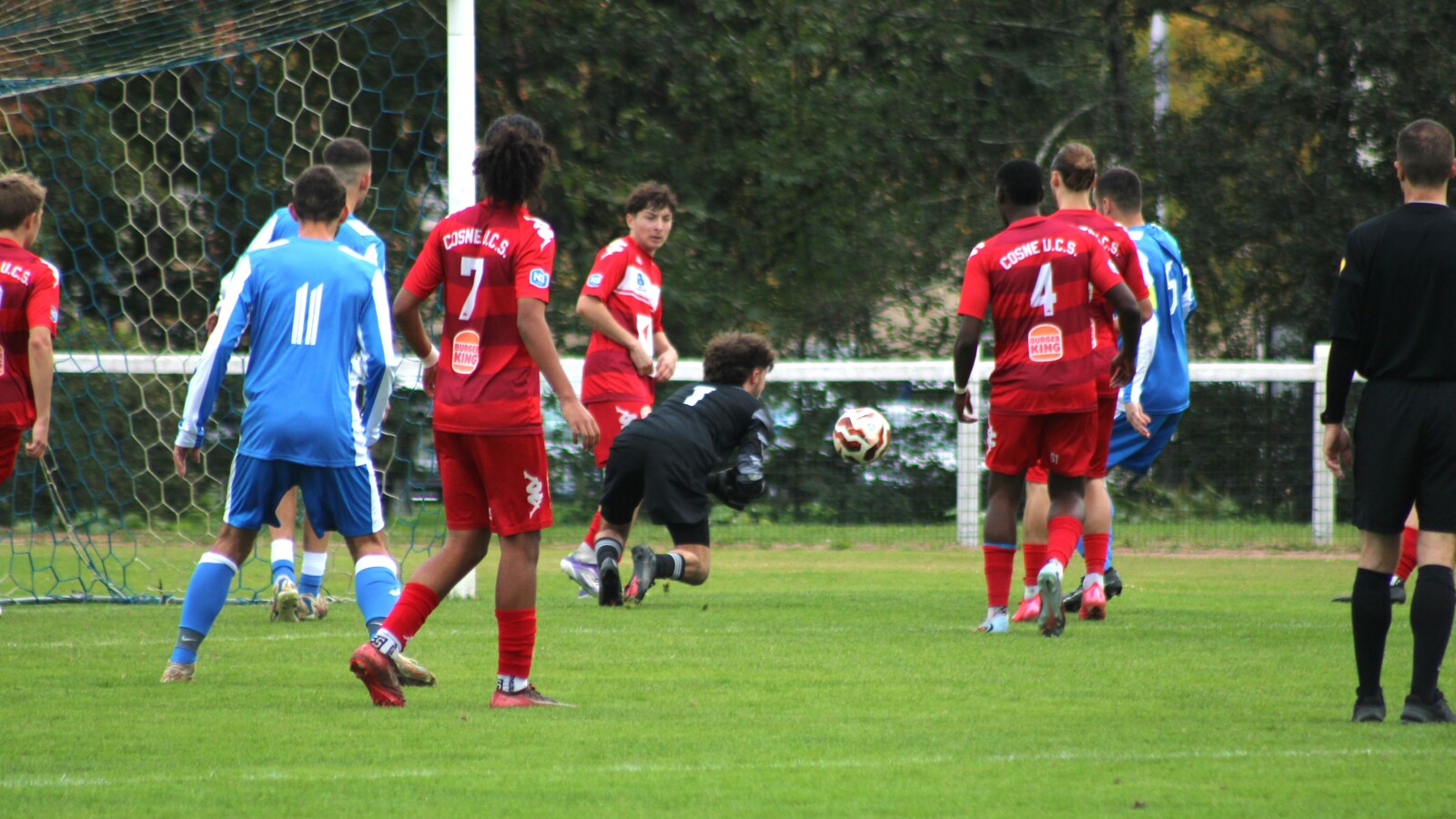 L’illustration de cette impuissance s’est caractérisée par le temps passé par le ballon dans les pieds des défenseurs cosnois au détriment des milieux et attaquants cosnois. Doublant et redoublant de ballons remis derrière, la réserve cosnoise a, de surcroit, offert sur plateaux des occasions aux garçons de l’ancien cosnois Éric Fossé qui n’en demandaient pas tant et qui ont su les mettre à profit… Et les conséquences ne se sont pas fait attendre : peu de situations de but pour les cosnois menés trois fois au score (10è, 36è et 75è) malgré l’expulsion temporaire du défenseur central et capitaine Geoffrey Larivé peu avant la mi-temps.