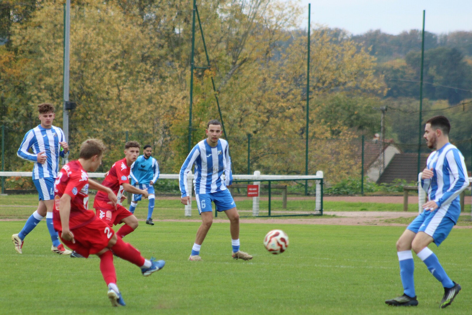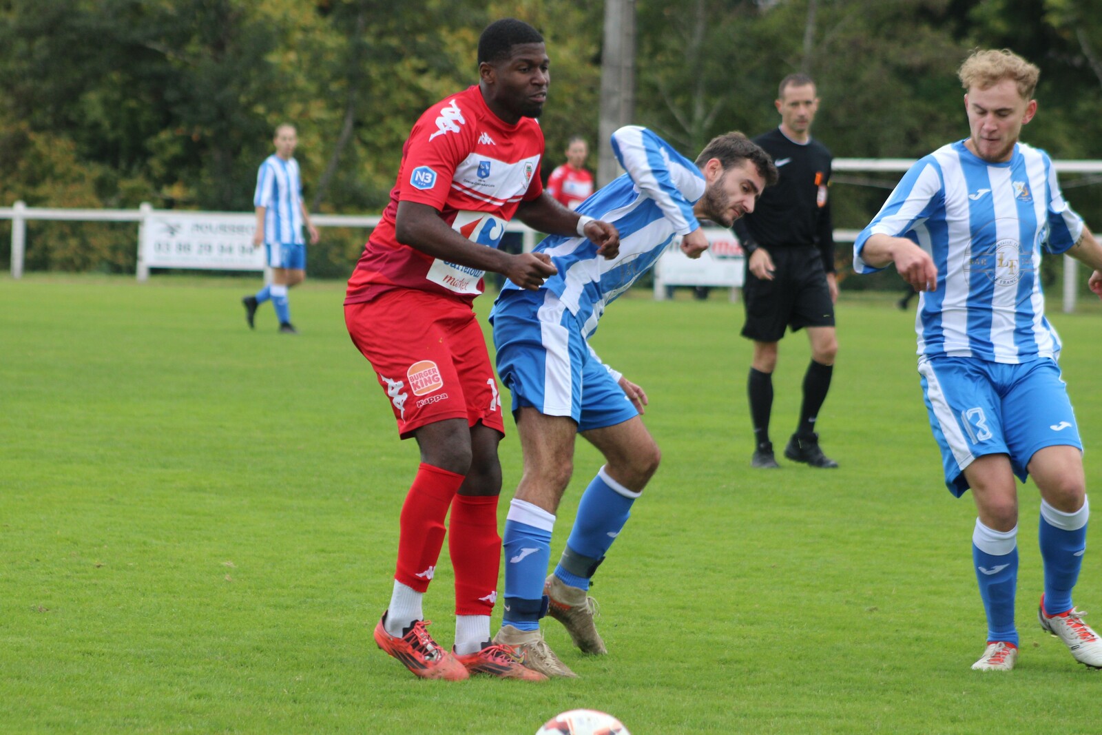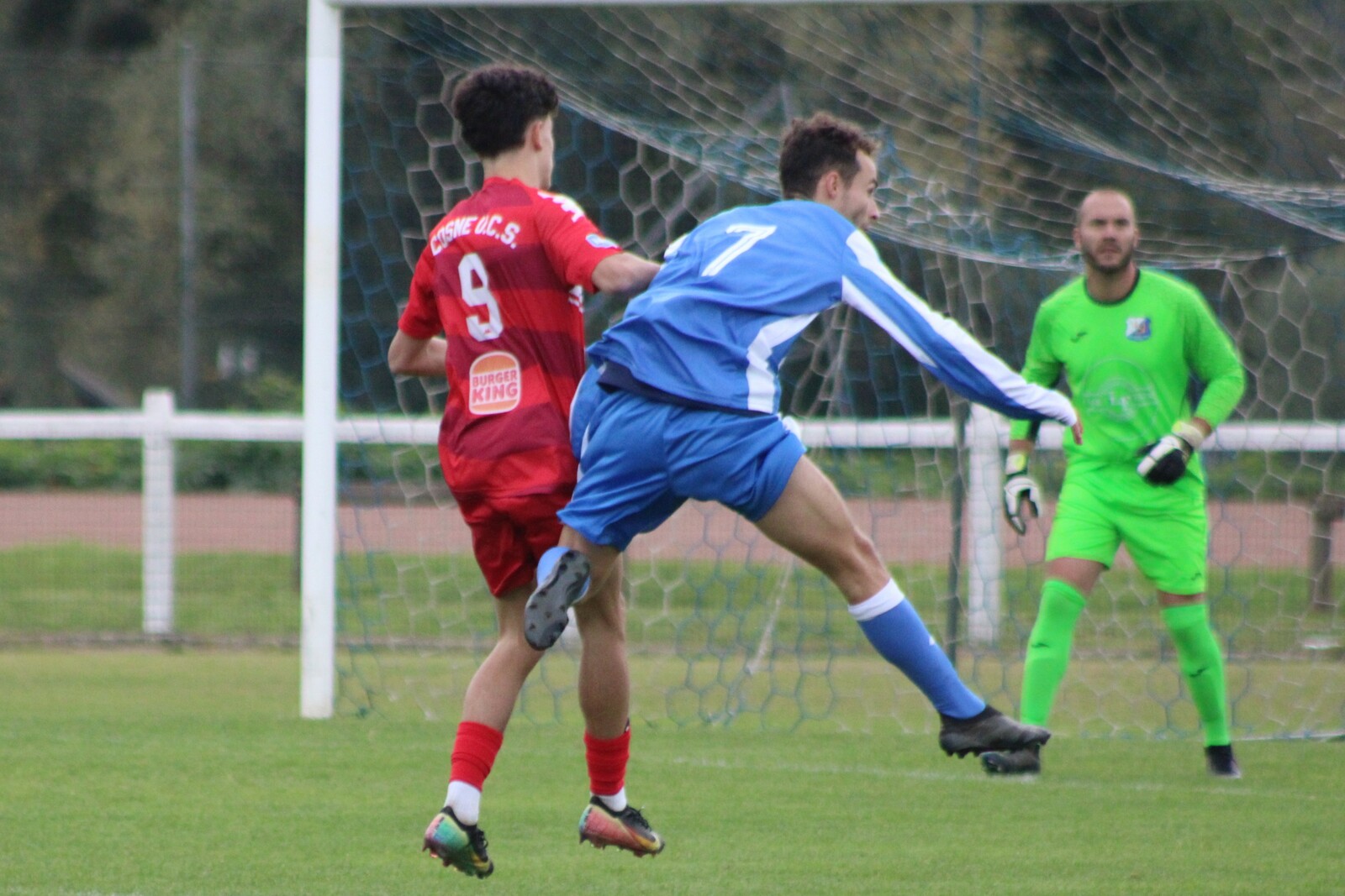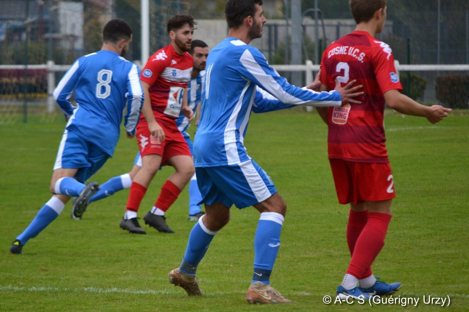 L’illustration de cette impuissance s’est caractérisée par le temps passé par le ballon dans les pieds des défenseurs cosnois au détriment des milieux et attaquants cosnois. Doublant et redoublant de ballons remis derrière, la réserve cosnoise a, de surcroit, offert sur plateaux des occasions aux garçons de l’ancien cosnois Éric Fossé qui n’en demandaient pas tant et qui ont su les mettre à profit… Et les conséquences ne se sont pas fait attendre : peu de situations de but pour les cosnois menés trois fois au score (10è, 36è et 75è) malgré l’expulsion temporaire du défenseur central et capitaine Geoffrey Larivé peu avant la mi-temps.