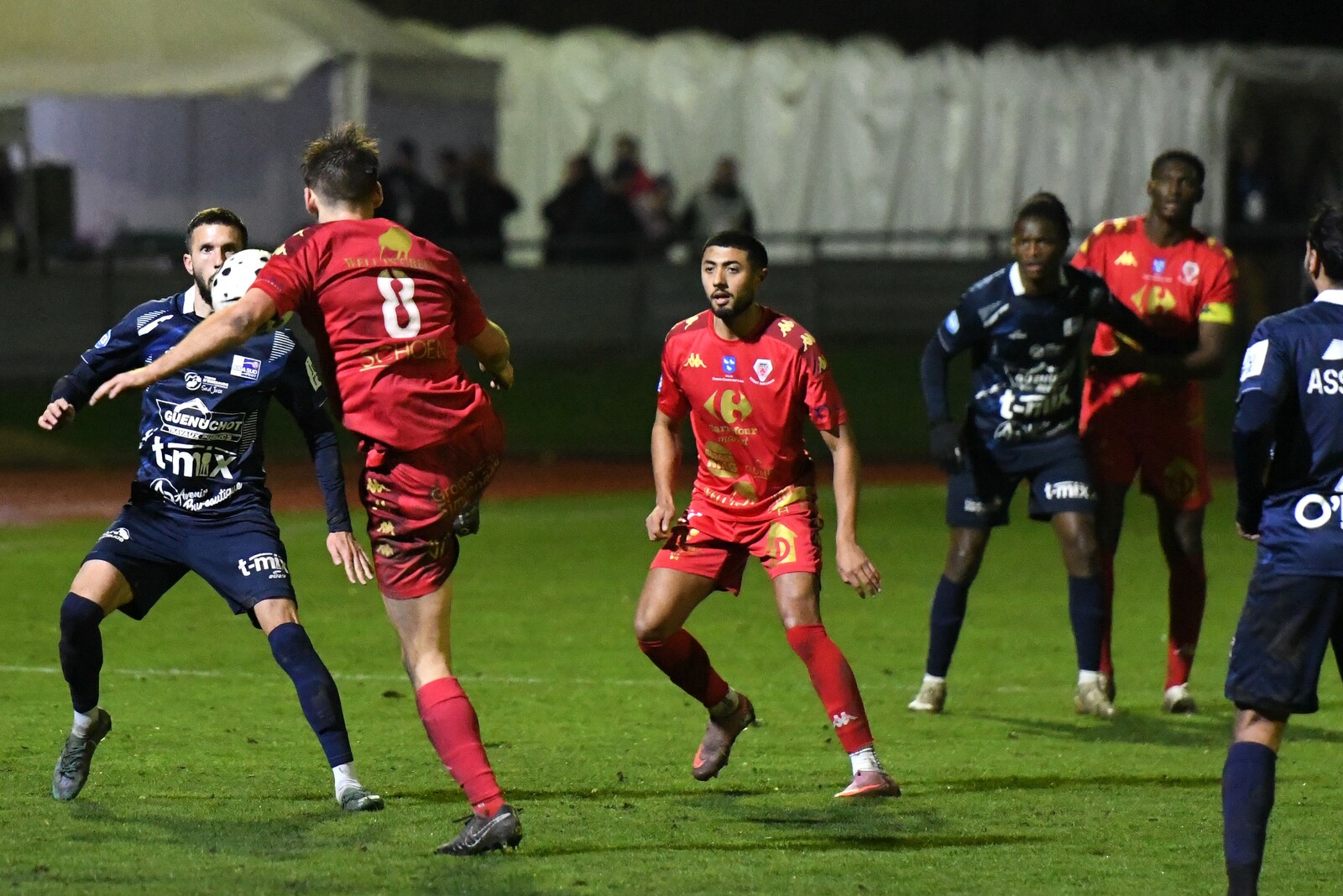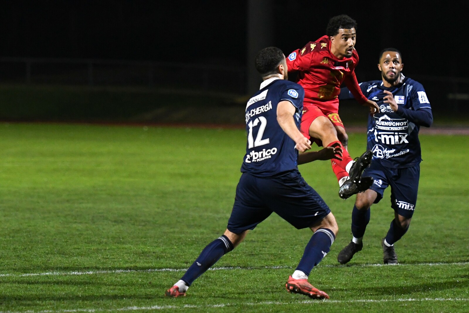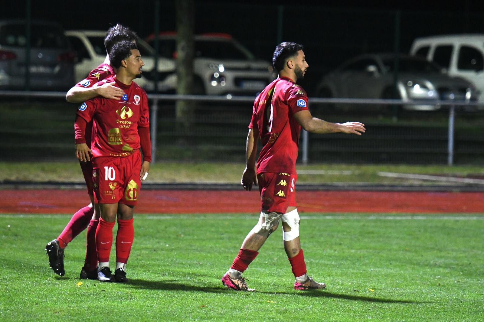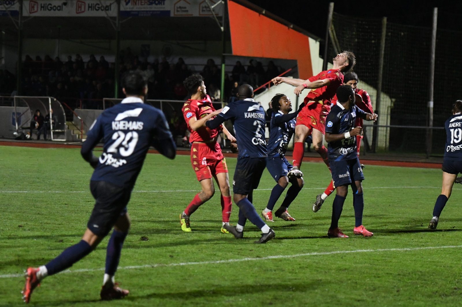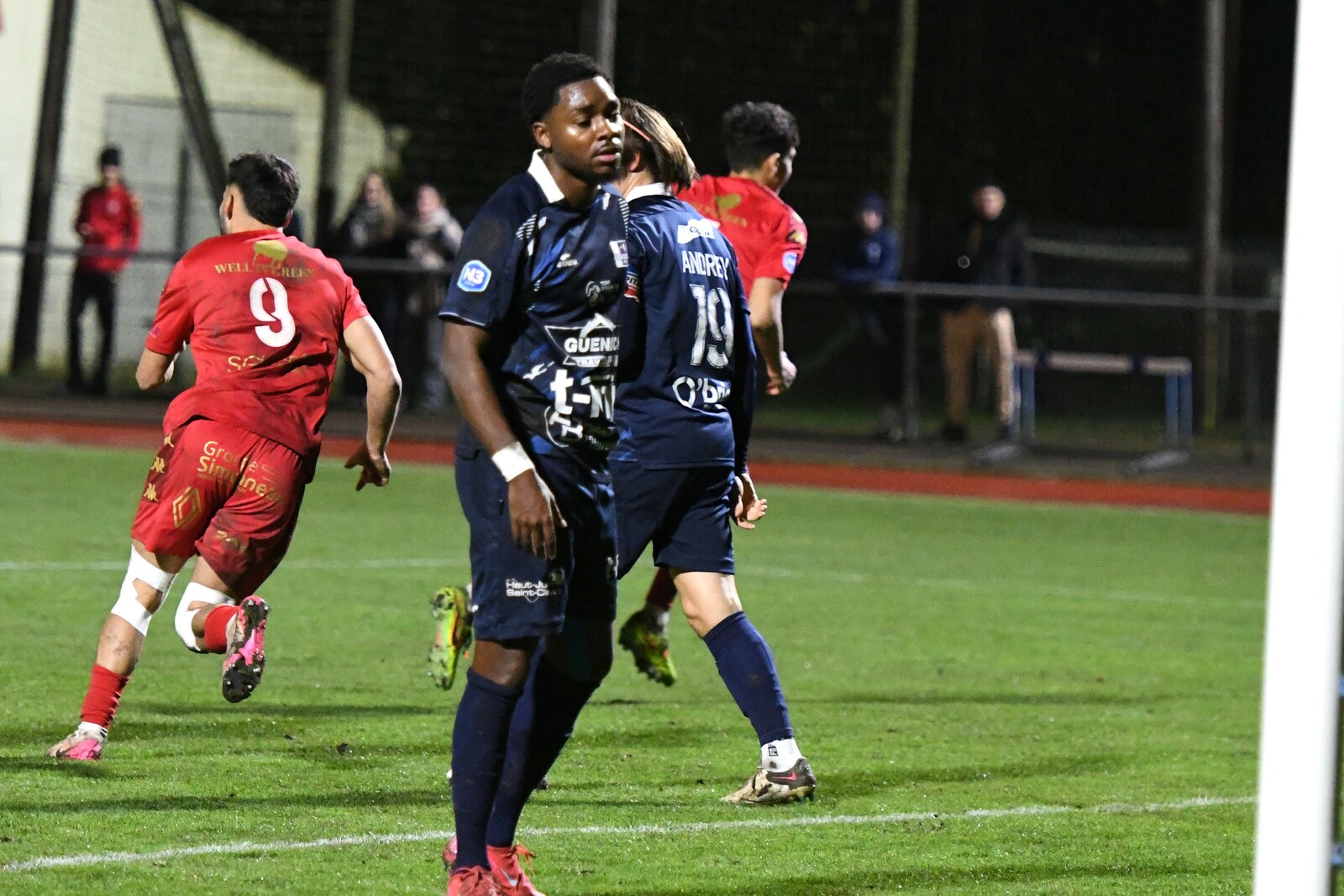 >>> photo (© JM Marchand) >>> Il y a bien longtemps que les cosnois ne nous ont plus habitué à ce type d'image... C'était contre Jura-Sud lors du match-aller ! Et si les buteurs de ce match-aller étaient Mattéo Berthé et Faouzi Benabed (à droite), cette fois il faudra compter sans Julien Grebert (n°8 à gauche), victime d'un claquage musculaire lors de la "chauffe" du précédent match de N3 (Moiulins Yzeure) >>>