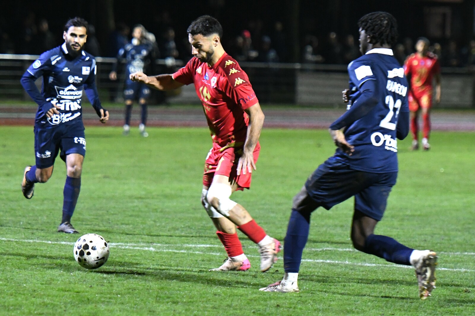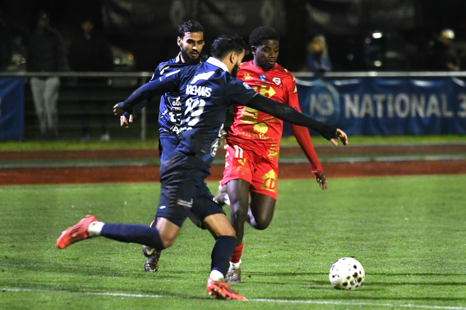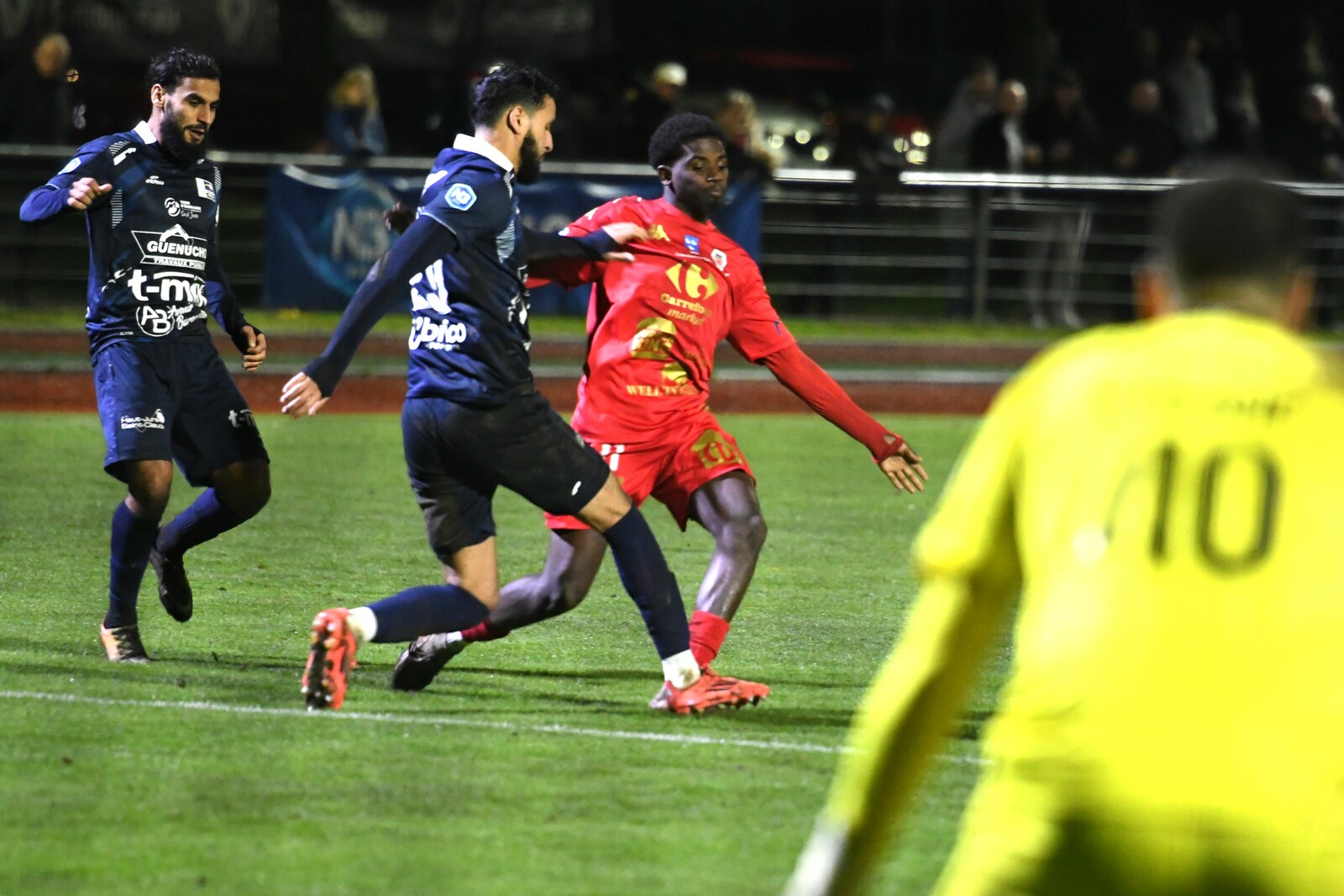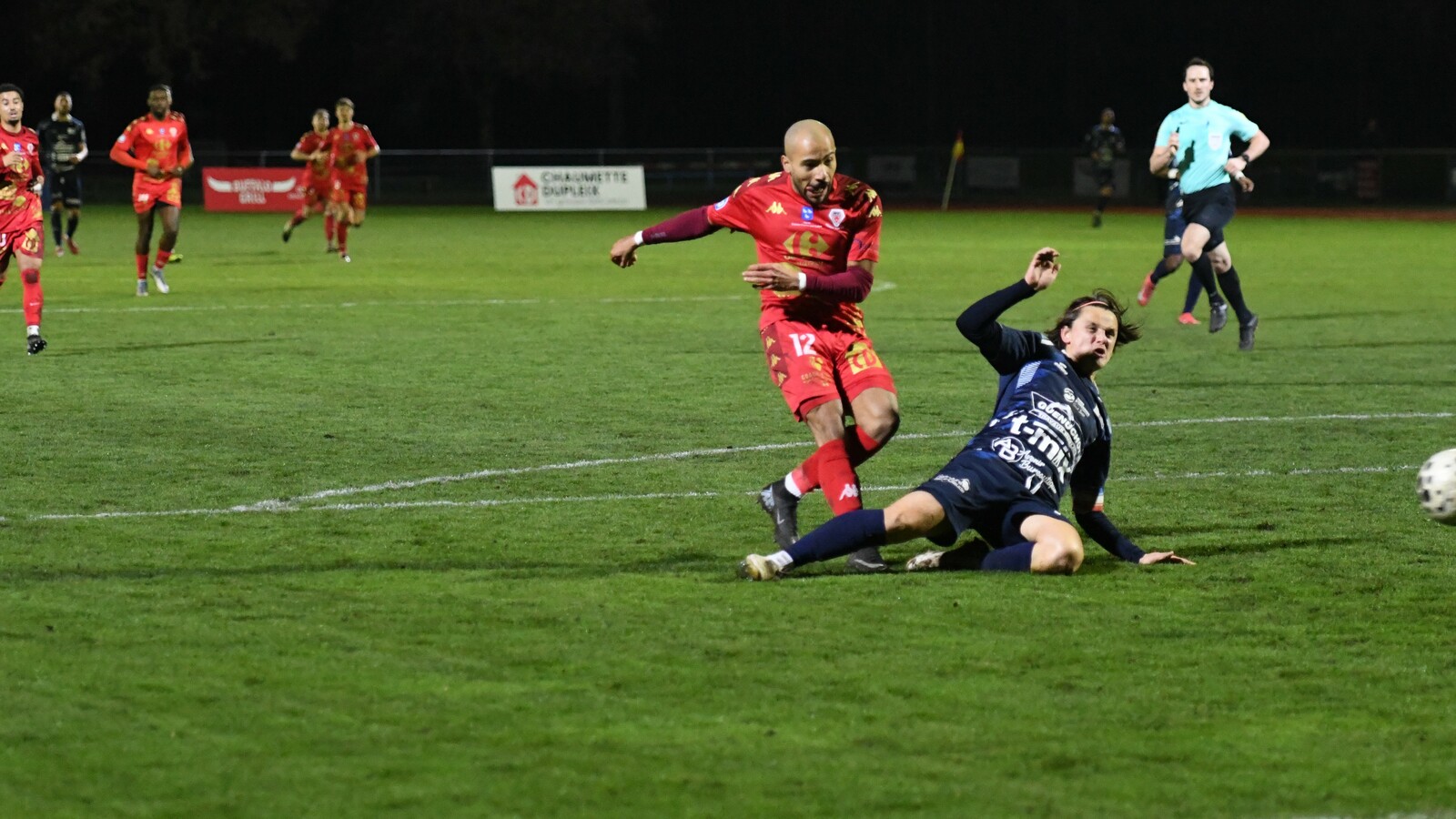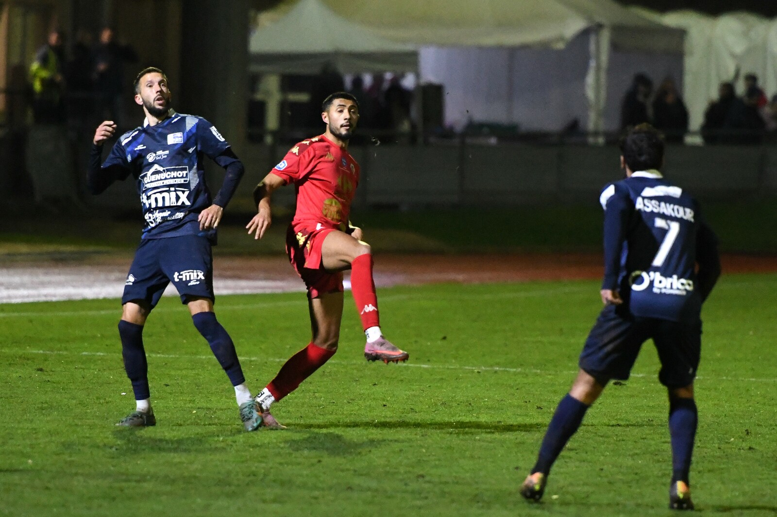 >>> photo (© JM Marchand) >>> Il y a bien longtemps que les cosnois ne nous ont plus habitué à ce type d'image... C'était contre Jura-Sud lors du match-aller ! Et si les buteurs de ce match-aller étaient Mattéo Berthé et Faouzi Benabed (à droite), cette fois il faudra compter sans Julien Grebert (n°8 à gauche), victime d'un claquage musculaire lors de la "chauffe" du précédent match de N3 (Moiulins Yzeure) >>>