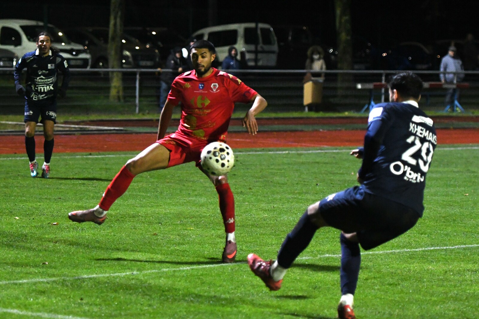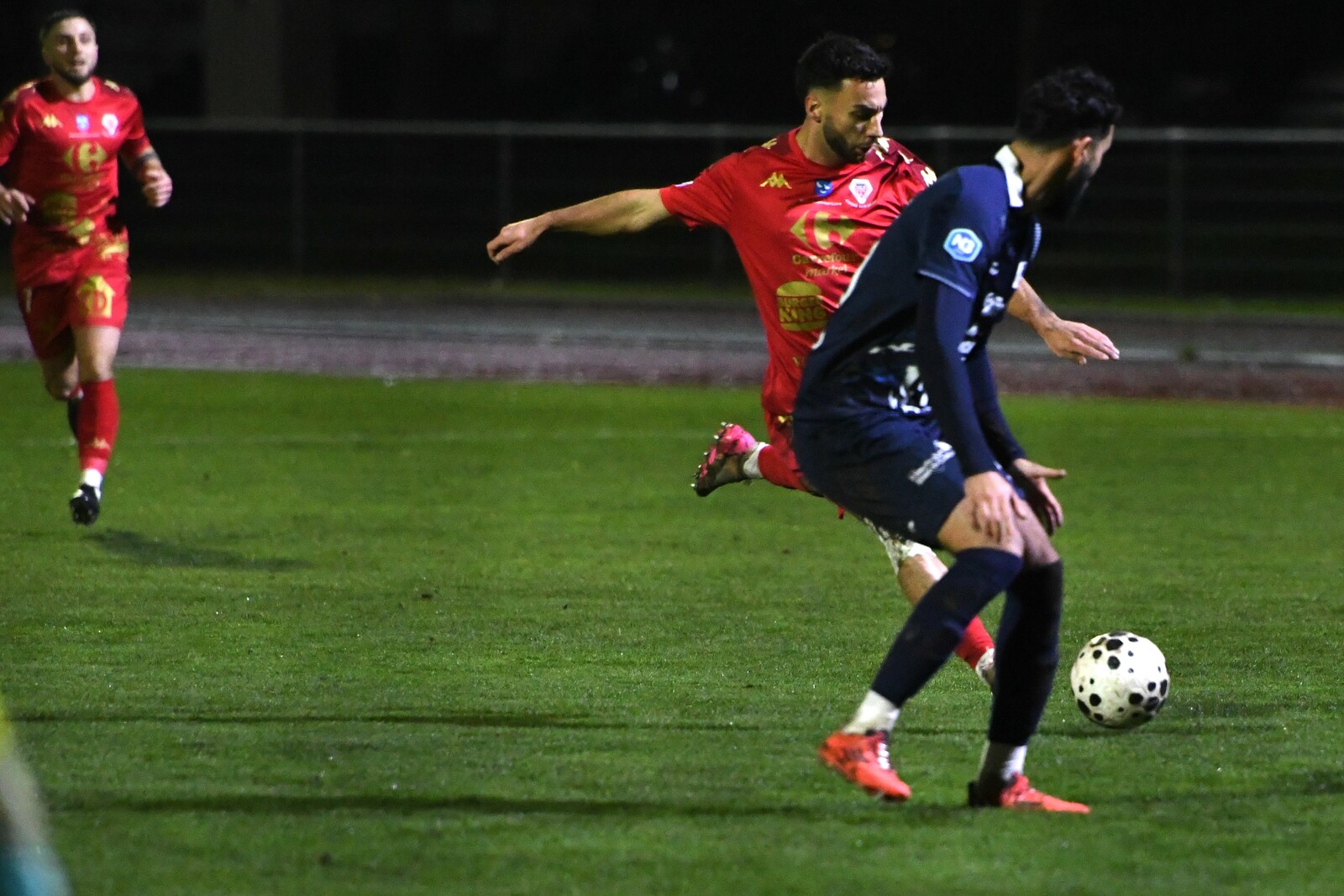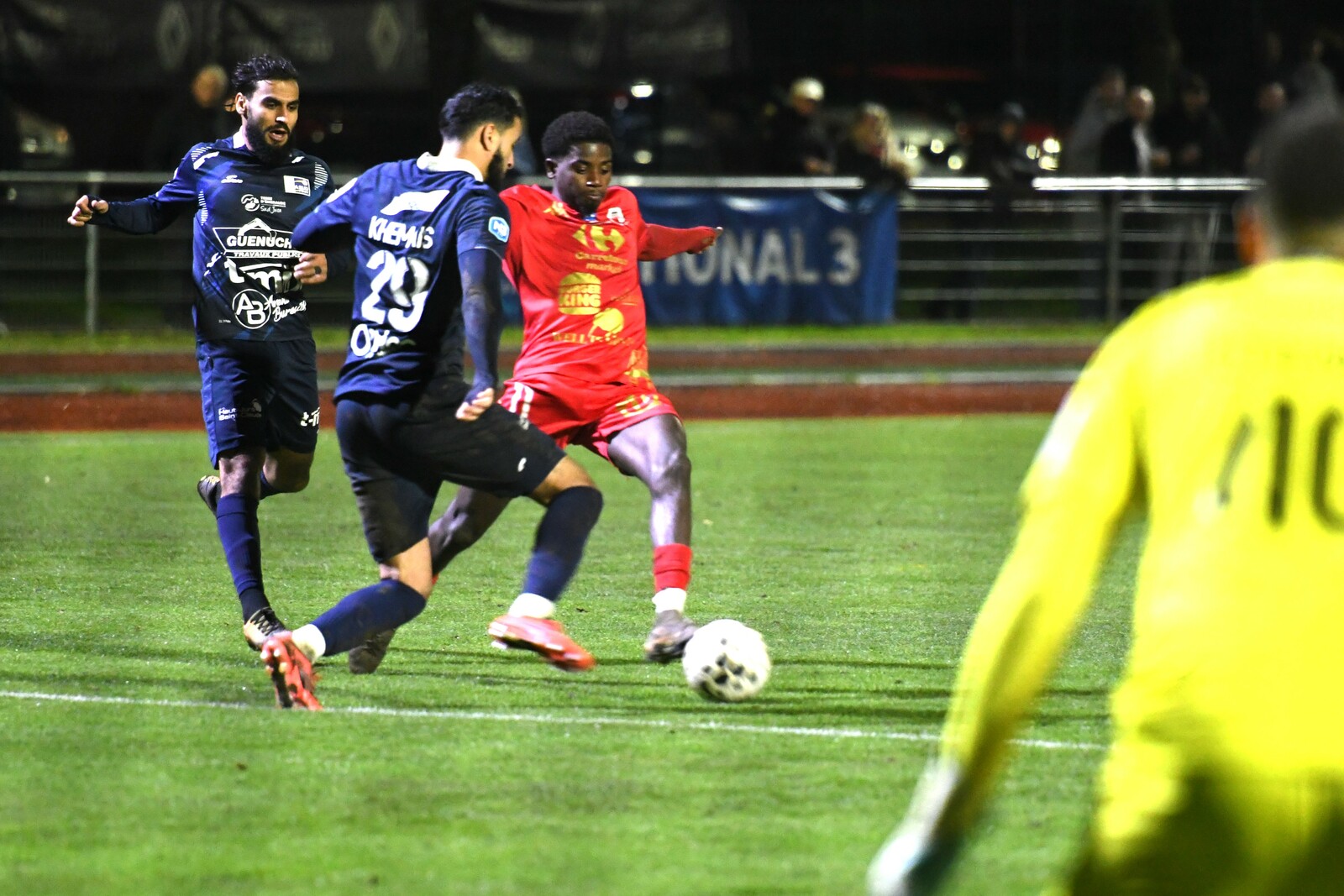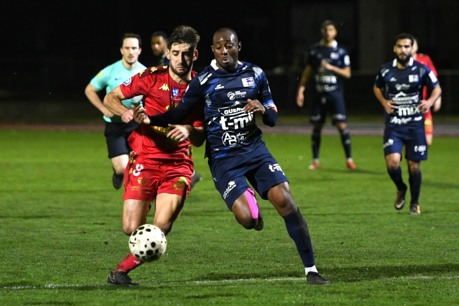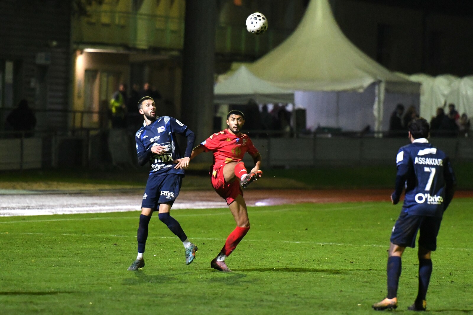 >>> photo (© JM Marchand) >>> Il y a bien longtemps que les cosnois ne nous ont plus habitué à ce type d'image... C'était contre Jura-Sud lors du match-aller ! Et si les buteurs de ce match-aller étaient Mattéo Berthé et Faouzi Benabed (à droite), cette fois il faudra compter sans Julien Grebert (n°8 à gauche), victime d'un claquage musculaire lors de la "chauffe" du précédent match de N3 (Moiulins Yzeure) >>>