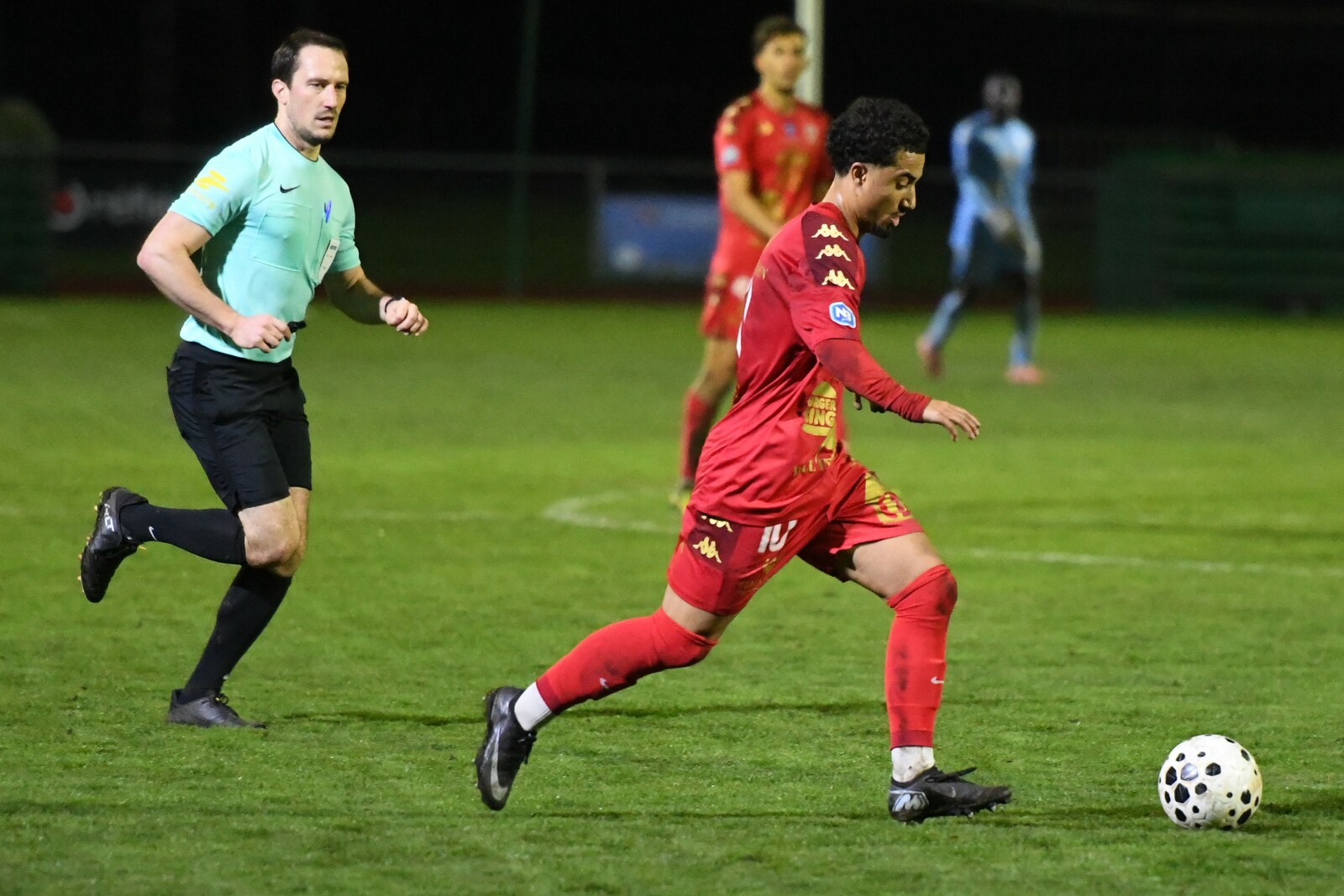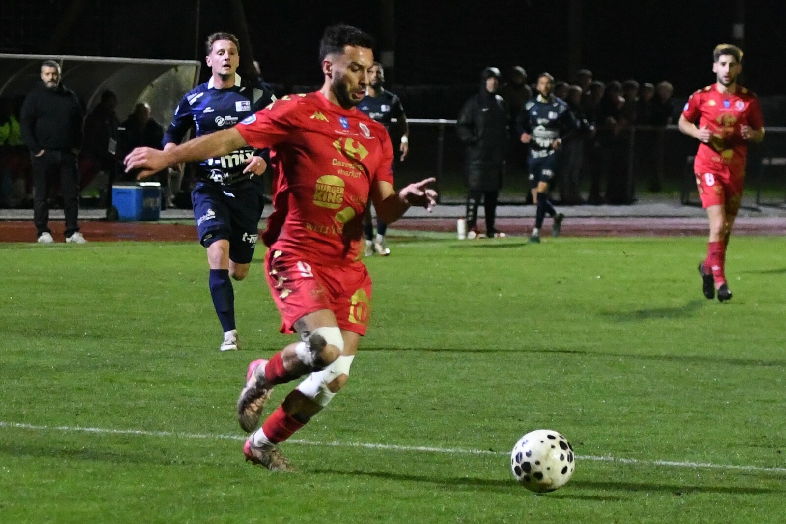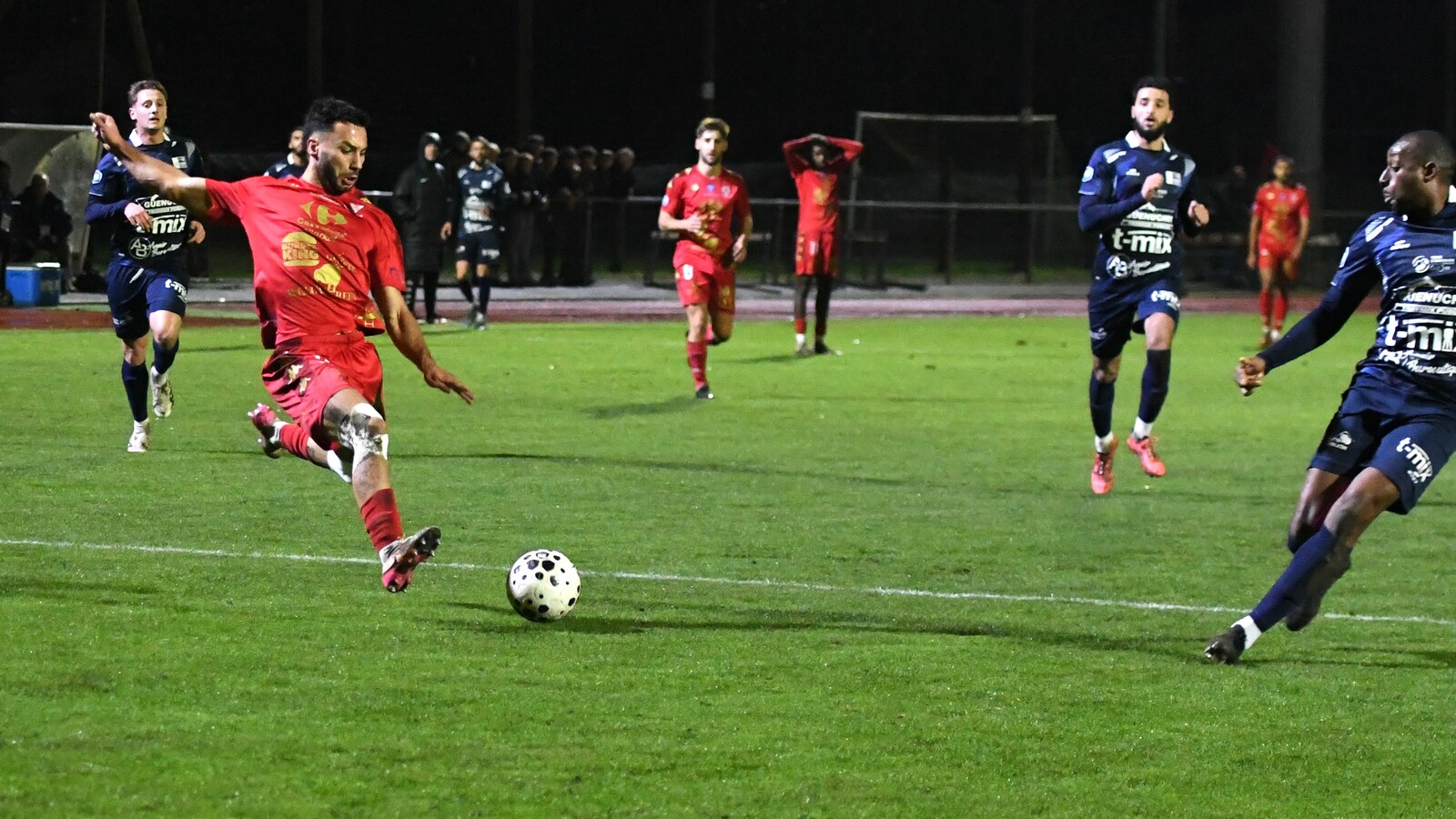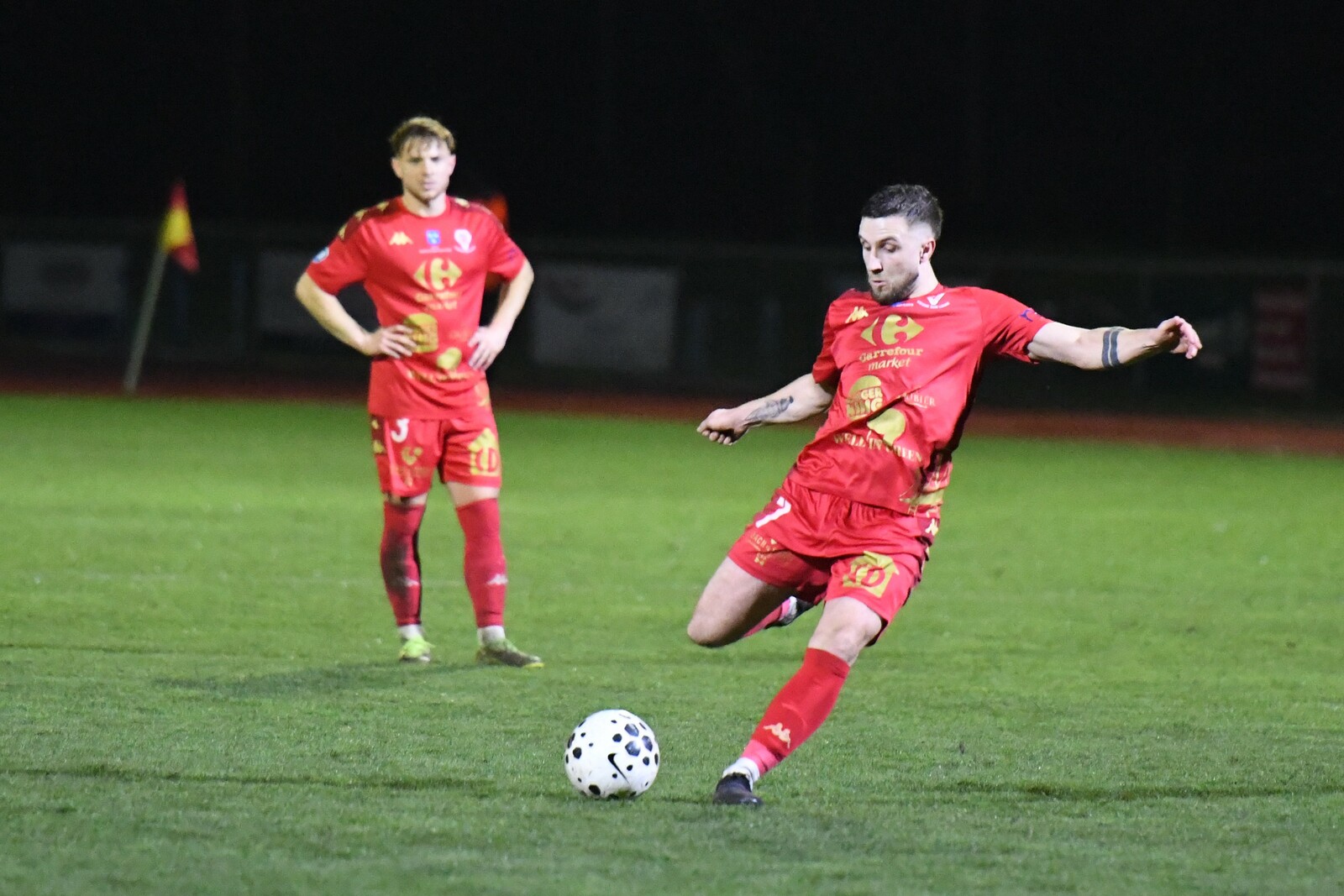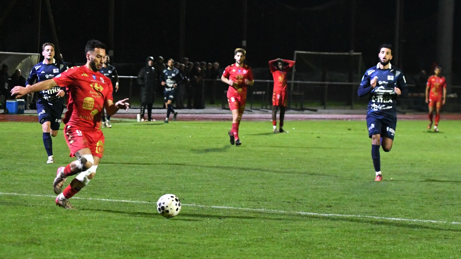 >>> photo (© JM Marchand) >>> Il y a bien longtemps que les cosnois ne nous ont plus habitué à ce type d'image... C'était contre Jura-Sud lors du match-aller ! Et si les buteurs de ce match-aller étaient Mattéo Berthé et Faouzi Benabed (à droite), cette fois il faudra compter sans Julien Grebert (n°8 à gauche), victime d'un claquage musculaire lors de la "chauffe" du précédent match de N3 (Moiulins Yzeure) >>>