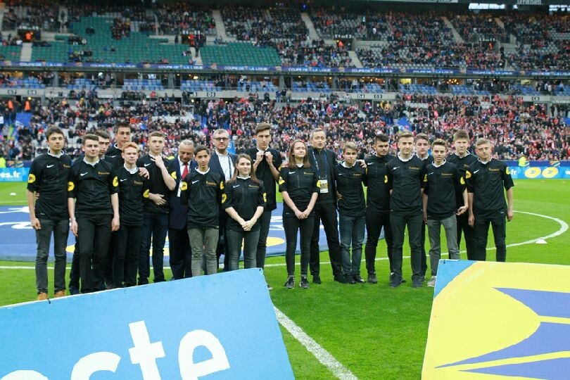Dans le cadre d’une opération menée par La Poste, le partenaire des arbitres, le jeune Quentin PINET de la filière arbitrage du lycée Fourier à Auxerre s’est rendu à Paris.Accompagné de Pierre BOLLET, formateur des jeunes arbitres au sein de la ligue de Bourgogne, il a participé à un rassemblement de plusieurs de jeunes officiels issus des filières arbitrage.Quentin a eu la chance de se rendre sur la pelouse du Stade de France avant la finale de la Coupe de la Ligue. Il a également reçu des mains de Jean-Raphaël GAITEY, responsable du partenariat entre les arbitres et le groupe La Poste, un maillot brodé à l’affiche de la finale.