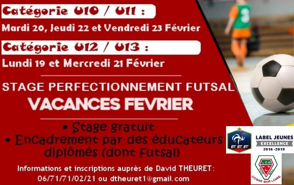 Dans le cadre de son programme de développement des pratiques, l'UCS Football organise pour la première fois un stage gratuit de perfectionnement futsal à destination de ses licenciés U10/U11 et U12/U13 (informations détaillées sur le programme à télécharger en bas de cette page) !