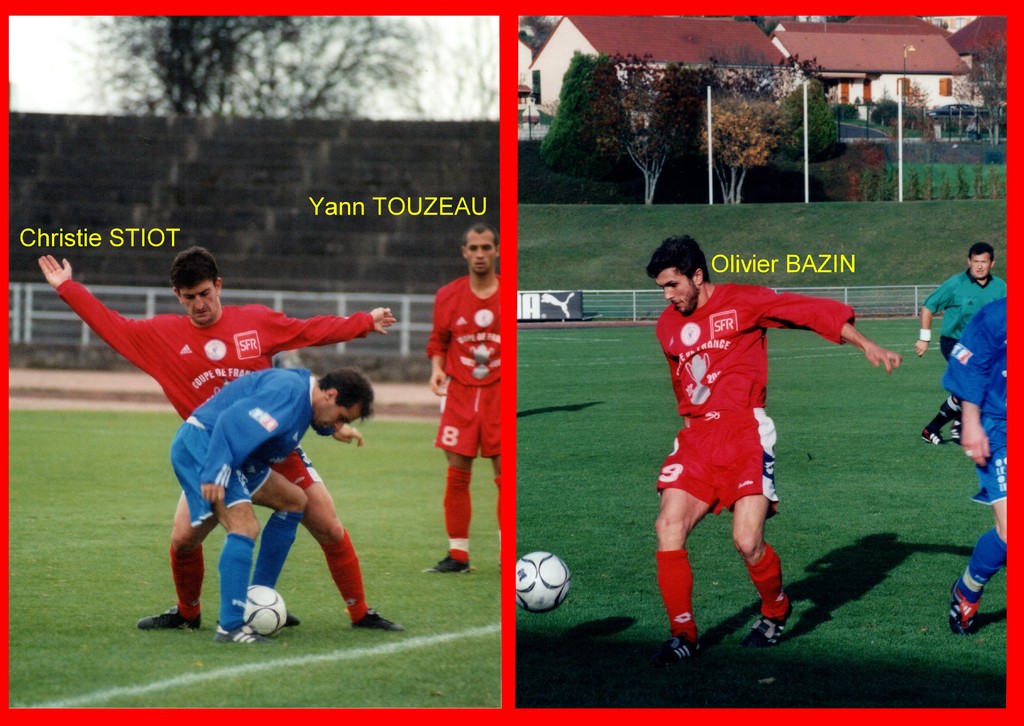 >>> Photo : Au Creusot, le 03 novembre 2002, les cosnois (en rouge) Christie Stiot, Yann Touzeau et Olivier Bazin (ces deux derniers de retour à Cosne dans l'encadrement 2018/2019) avaient tutoyé un 7ème tour... Après avoir menè à la marque, la séance des tirs au but leur avait été fatale >>>
