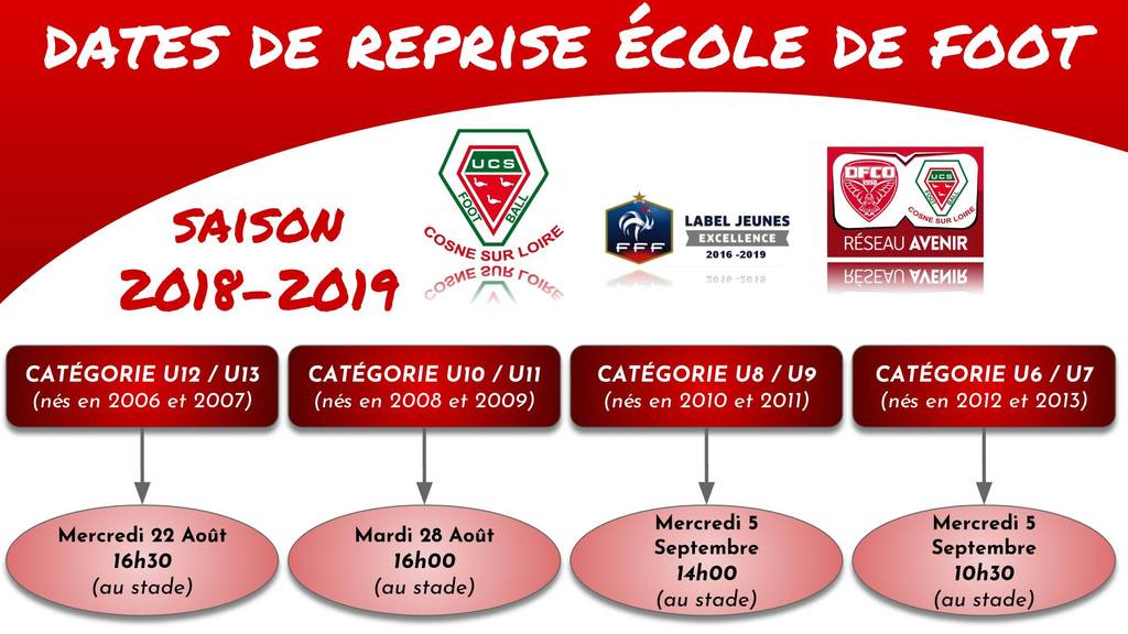 Au fil des derniers jours d'Août, les reprises à COSNE UCS FOOTBALL s'enchaînent...