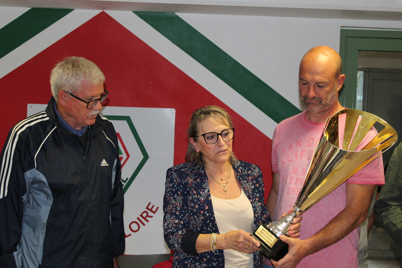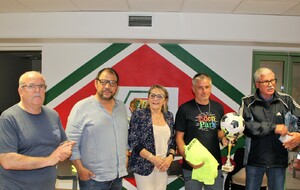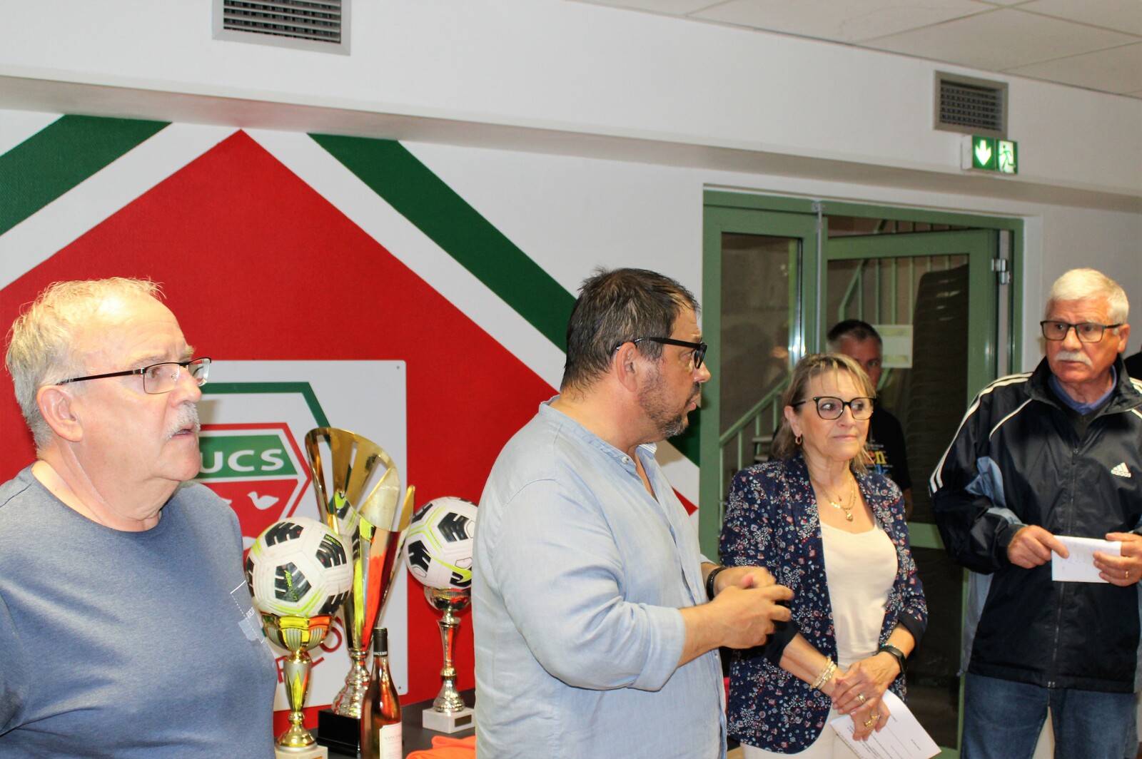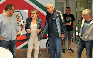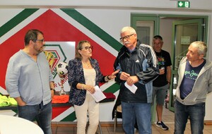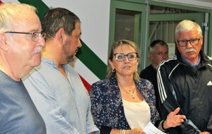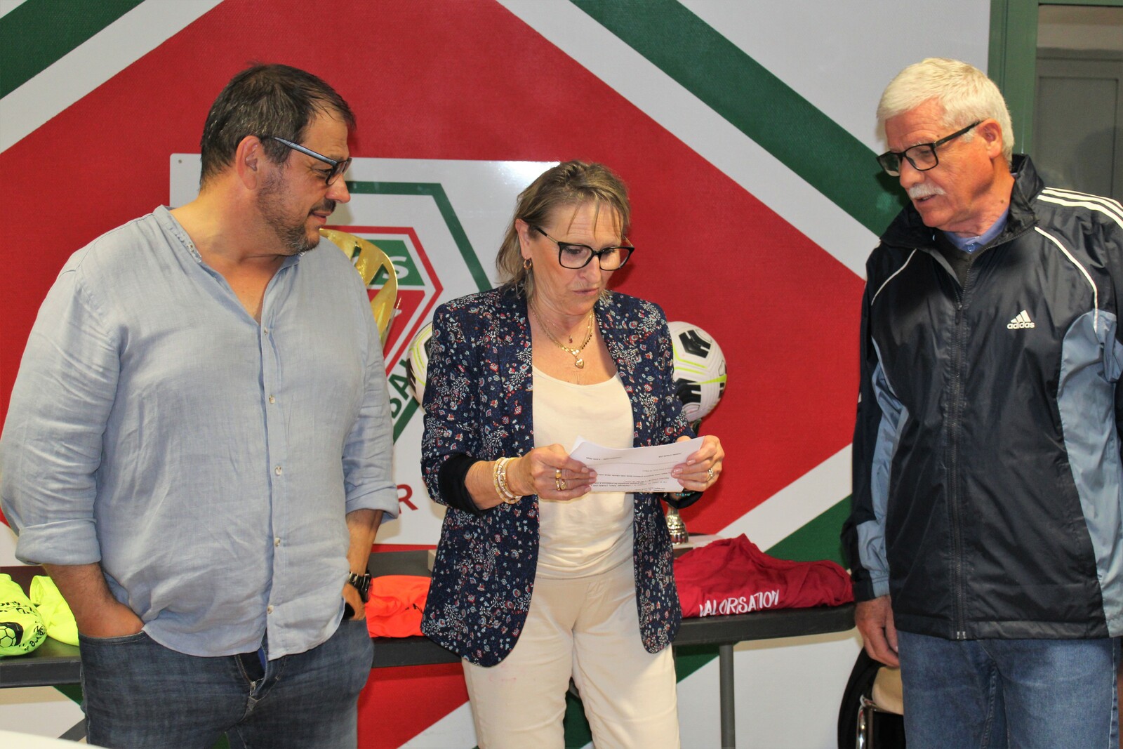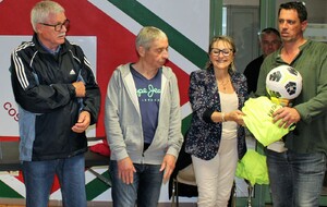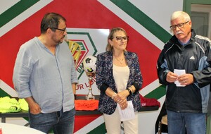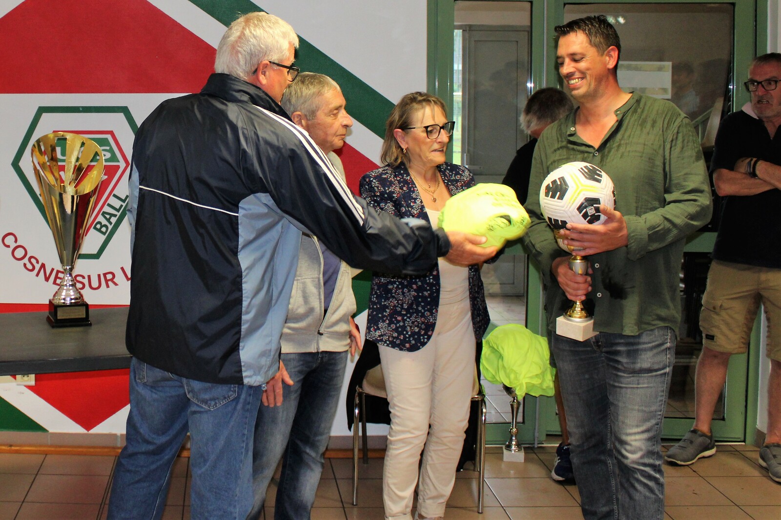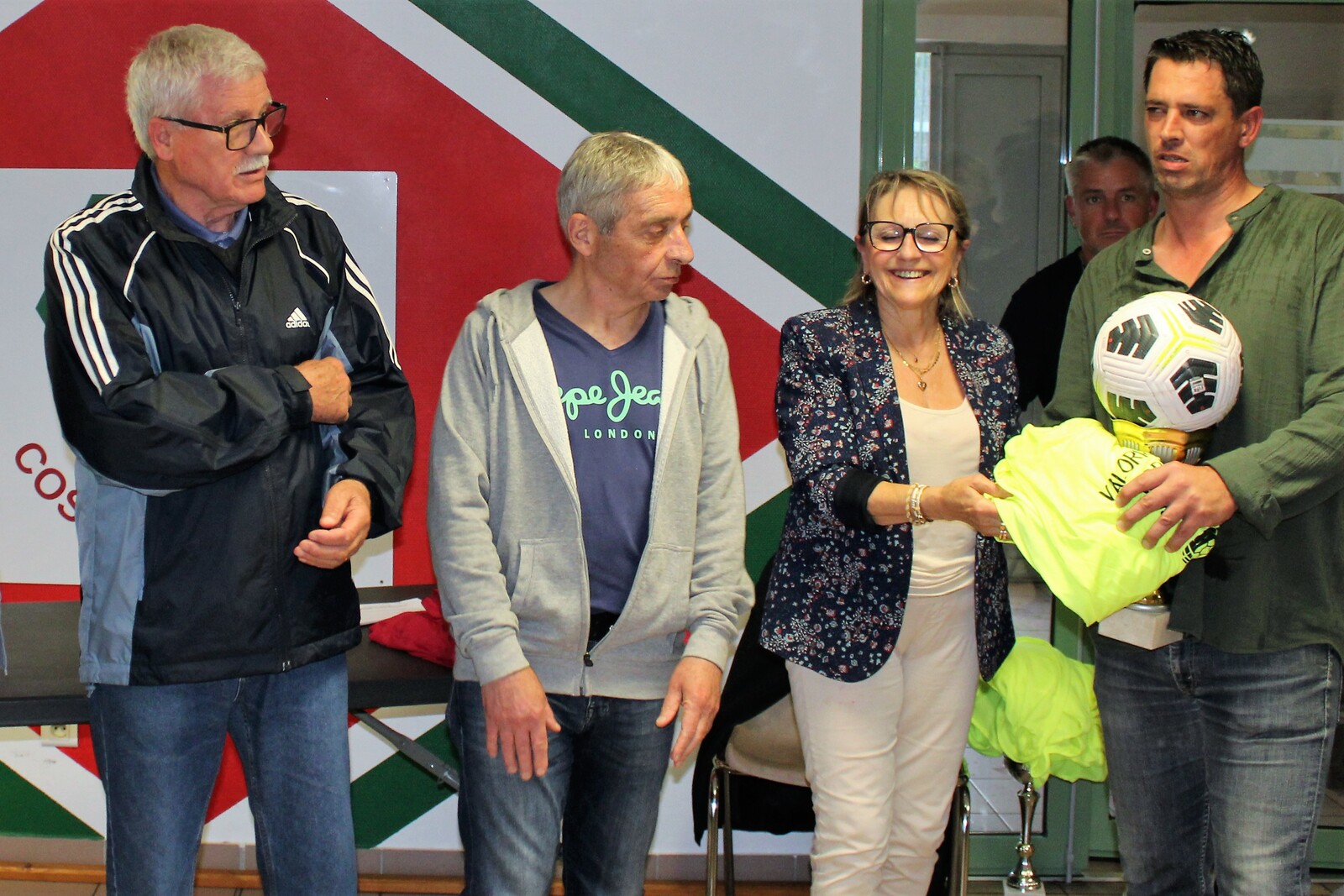 >>> photo >>> Madame Charlois a évoqué le souvenir de son mari, Alain, en présence de Christophe Marville, Président du club cosnois, et de Joseph Berforini, en charge au District de la Nièvre, de ce critérium vétérans >>>
