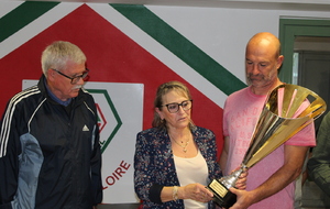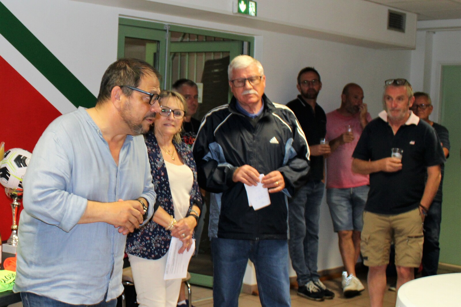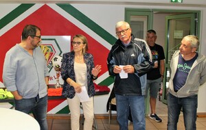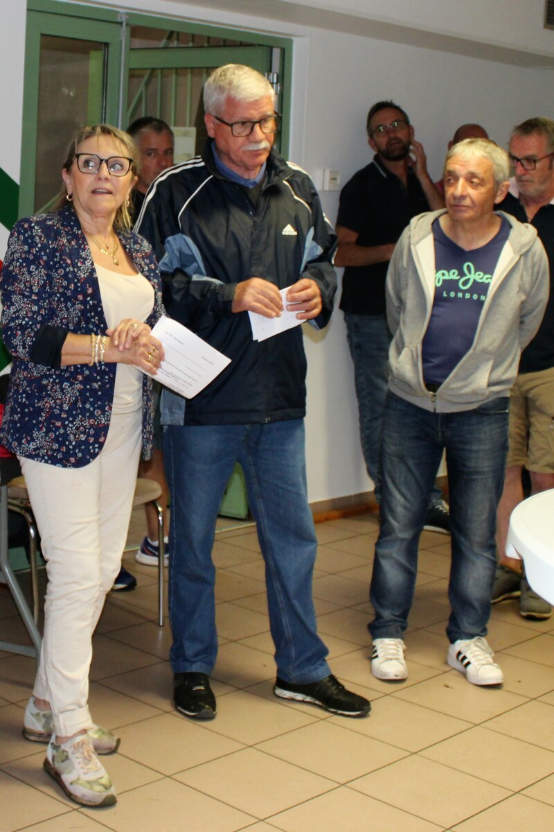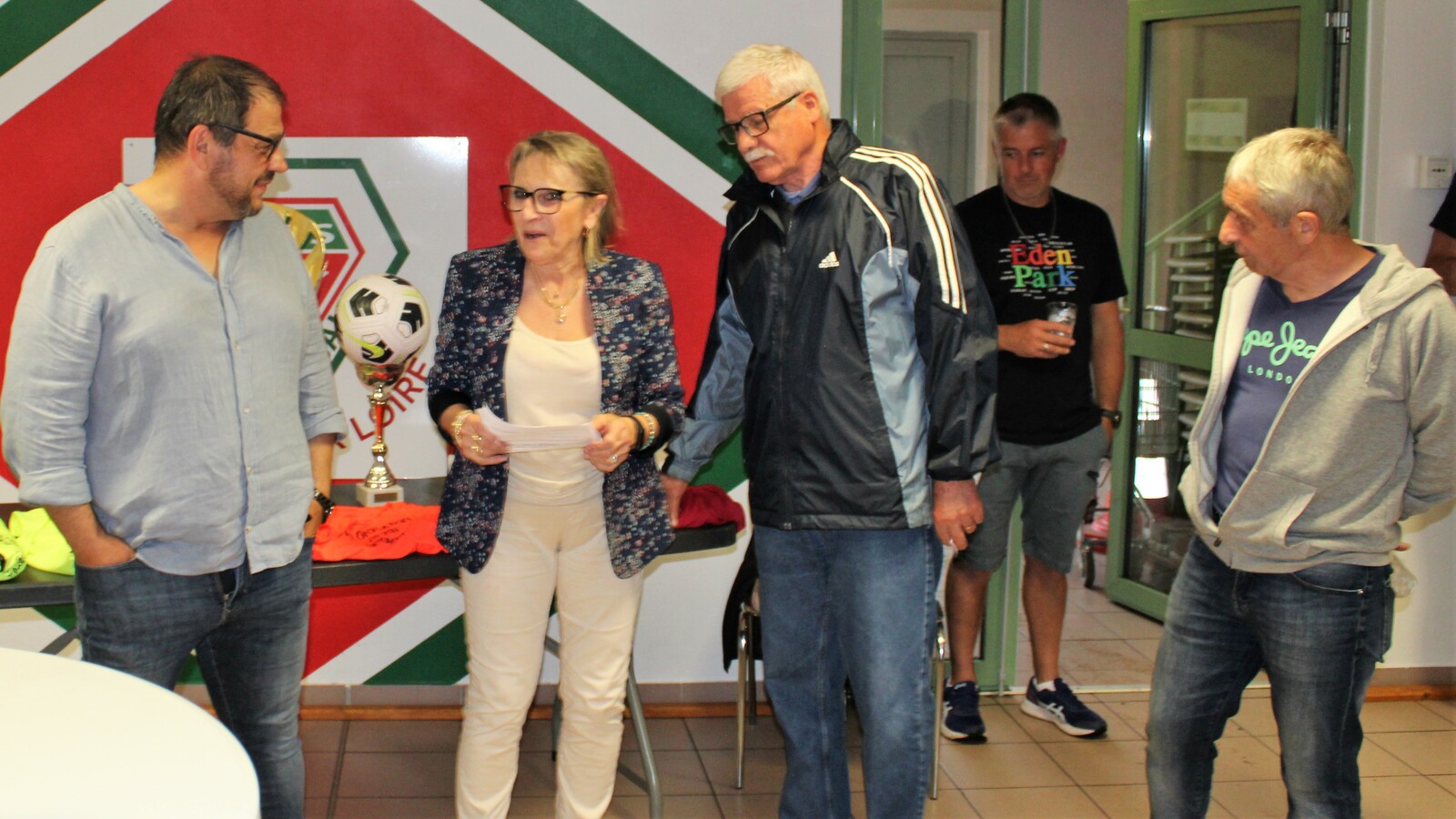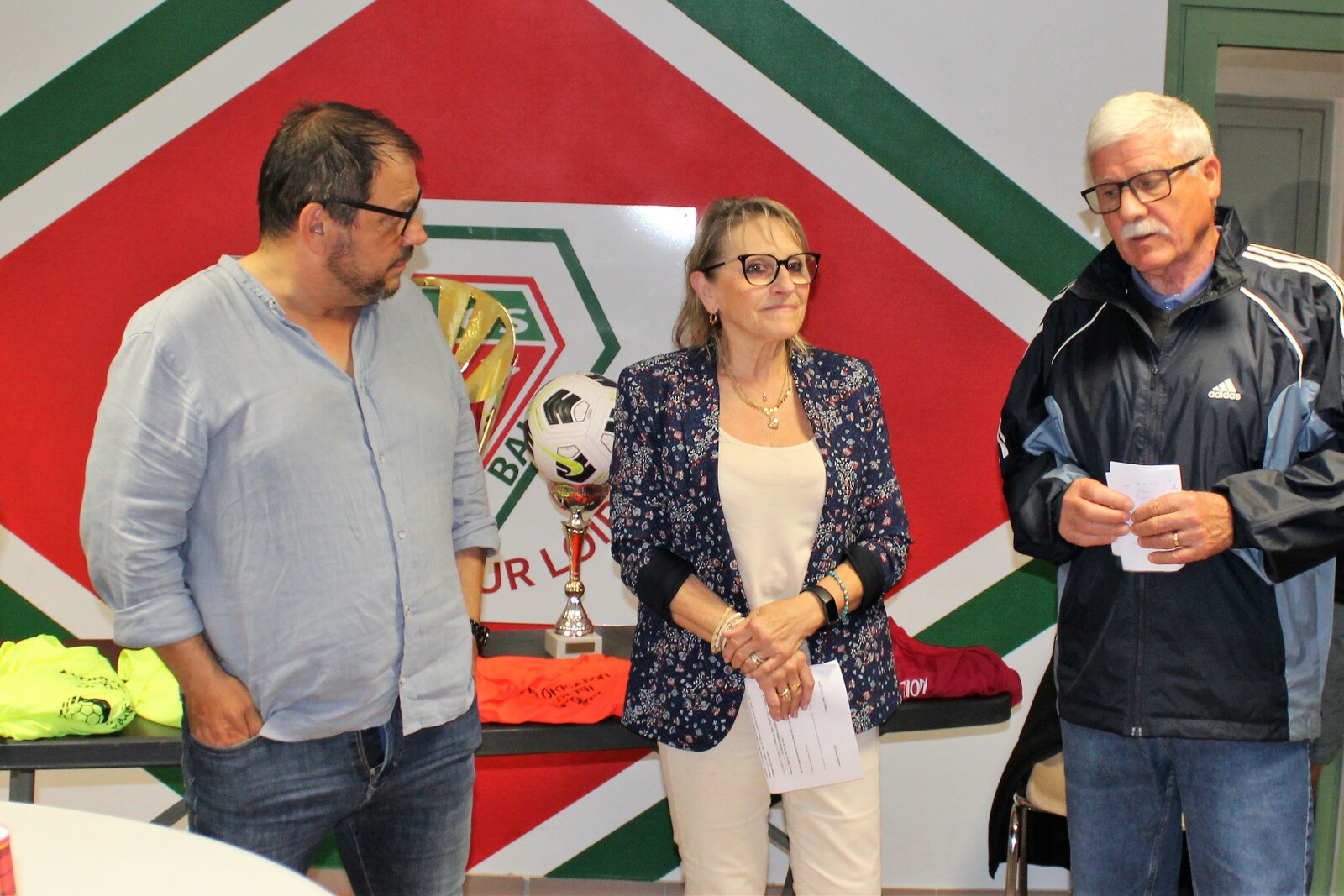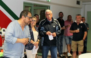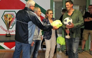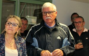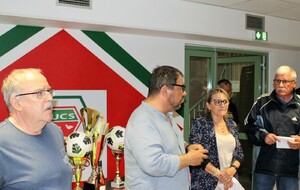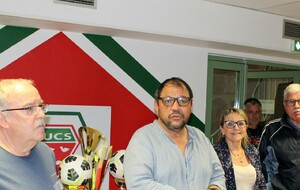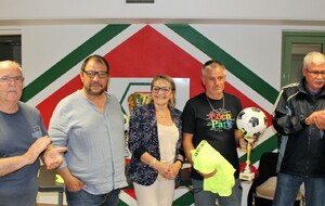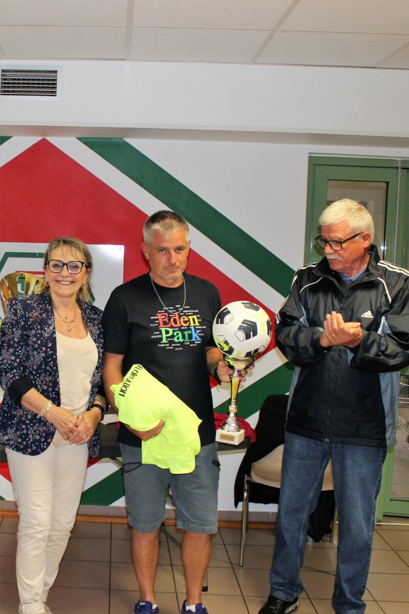>>> photo >>> Madame Charlois a évoqué le souvenir de son mari, Alain, en présence de Christophe Marville, Président du club cosnois, et de Joseph Berforini, en charge au District de la Nièvre, de ce critérium vétérans >>>
