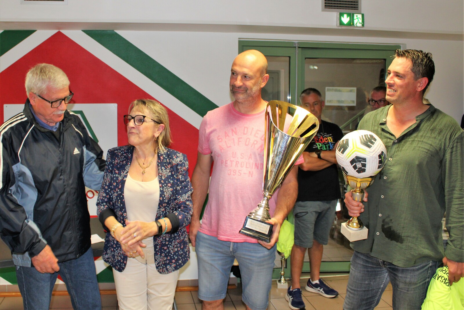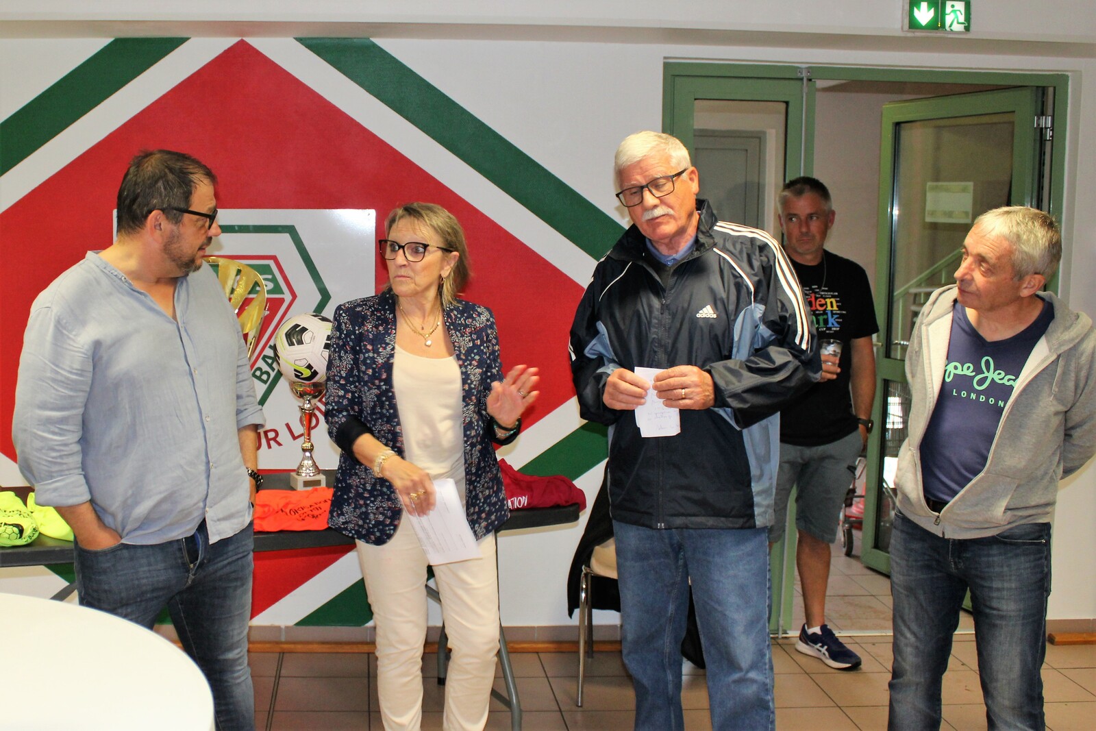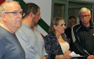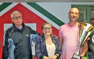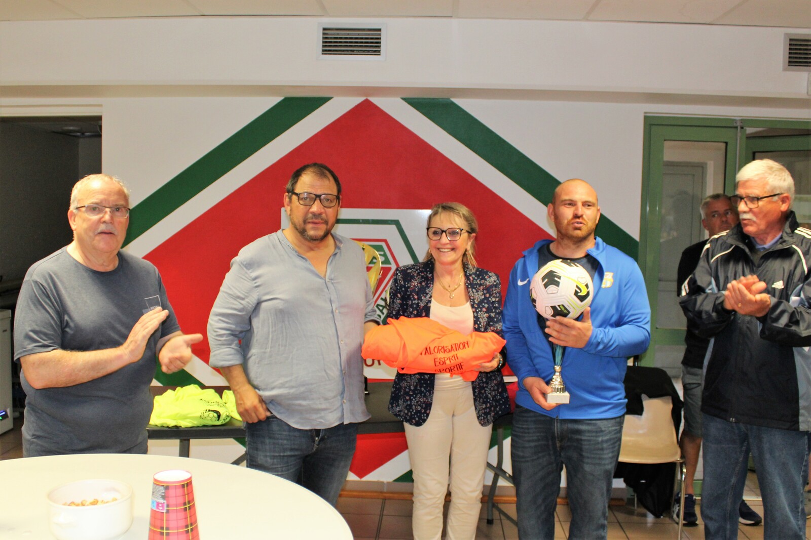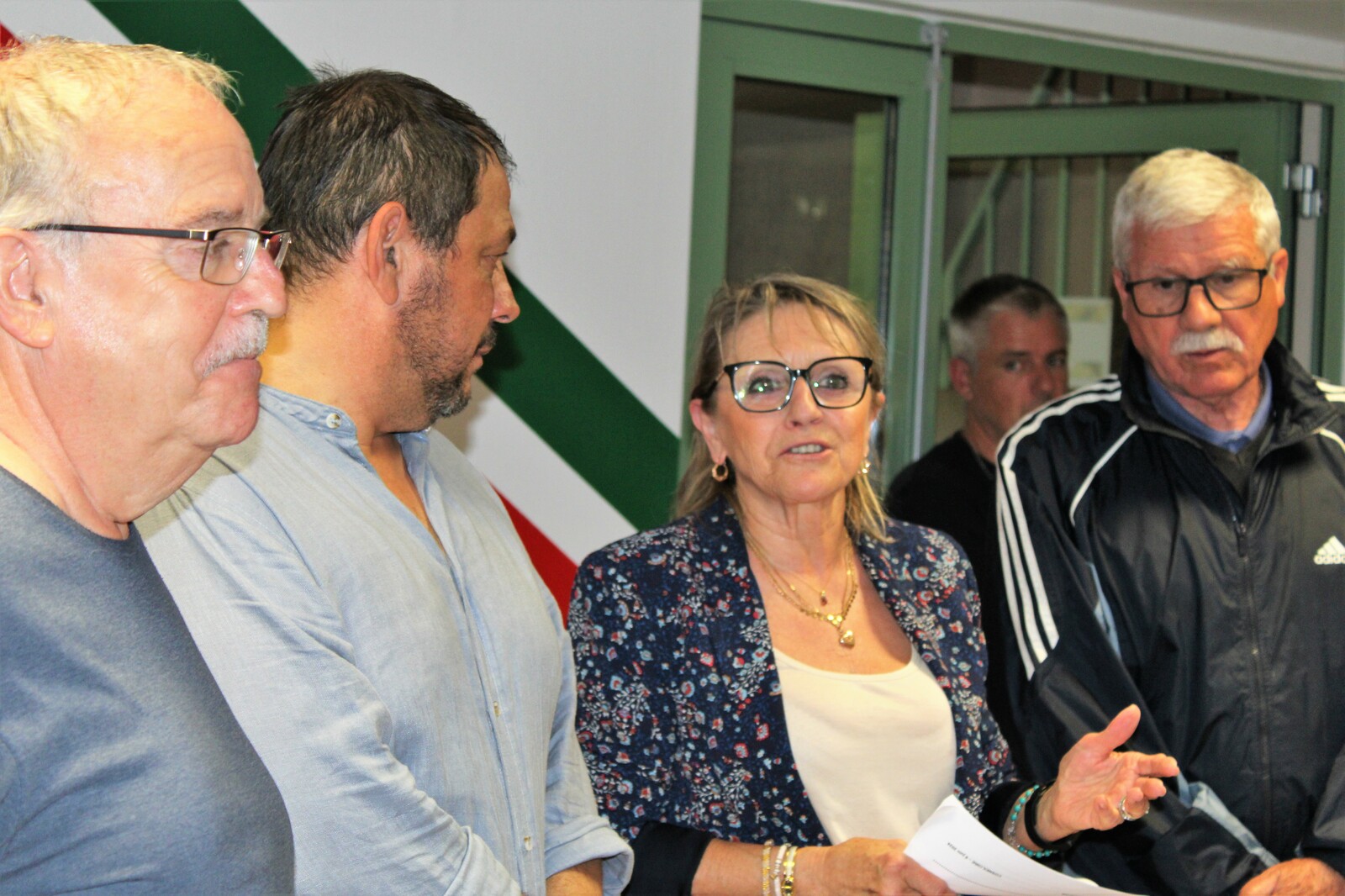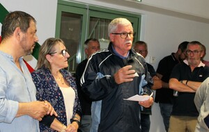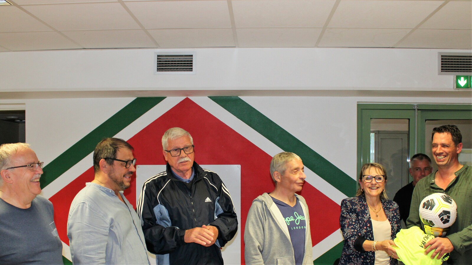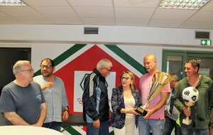 >>> photo >>> Madame Charlois a évoqué le souvenir de son mari, Alain, en présence de Christophe Marville, Président du club cosnois, et de Joseph Berforini, en charge au District de la Nièvre, de ce critérium vétérans >>>
