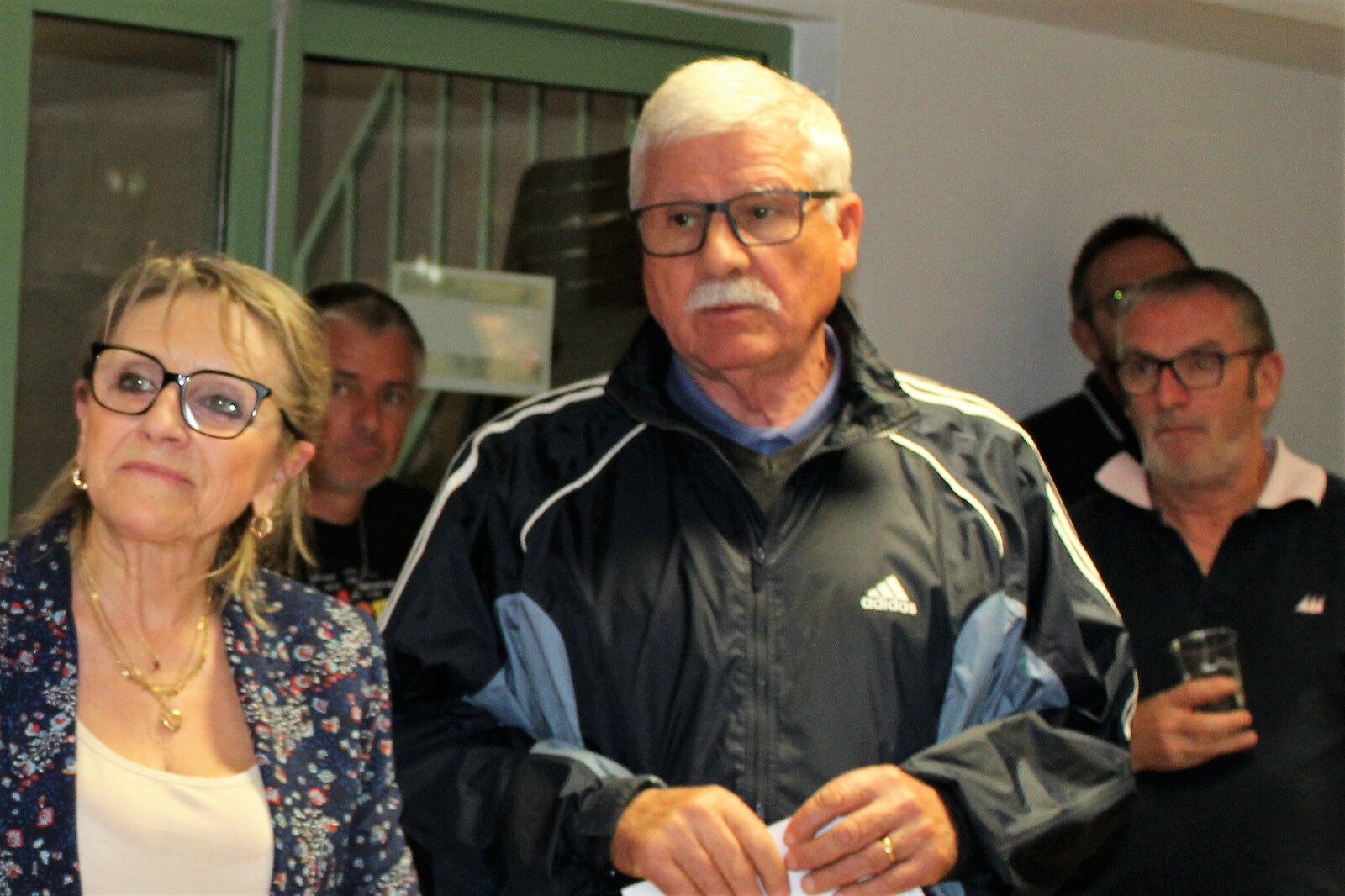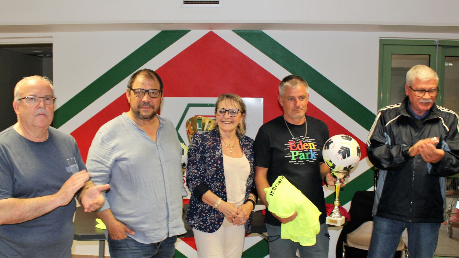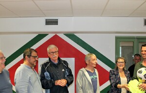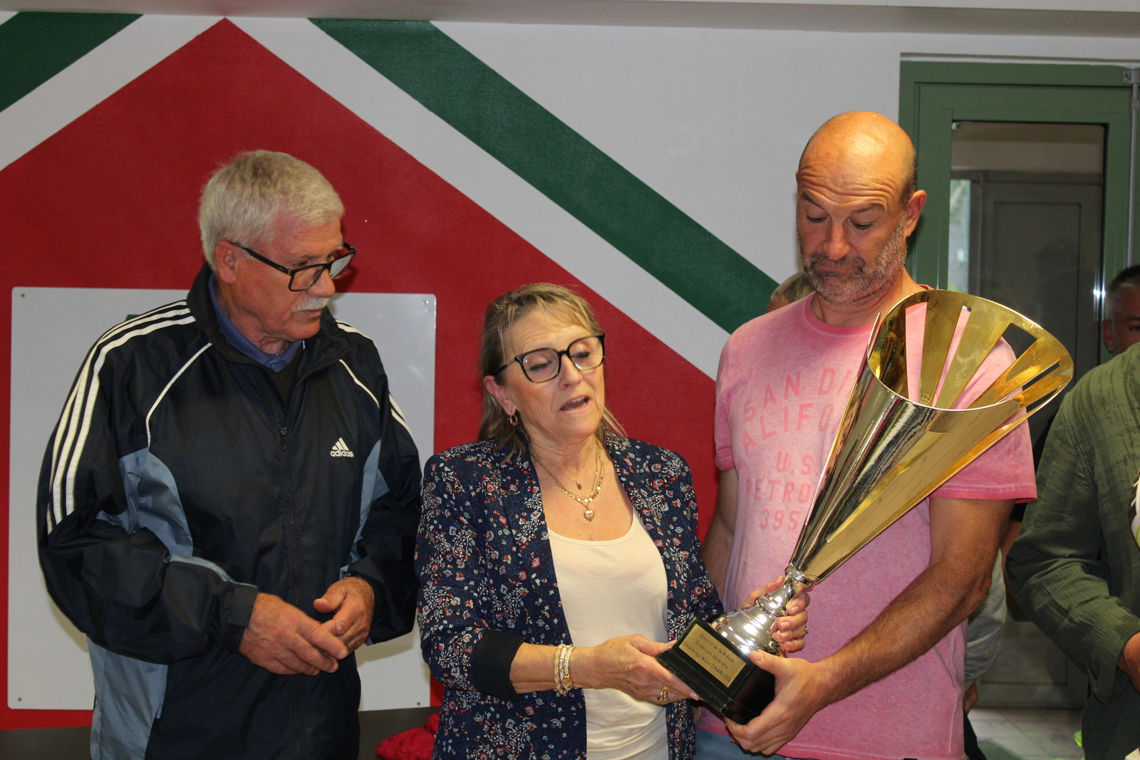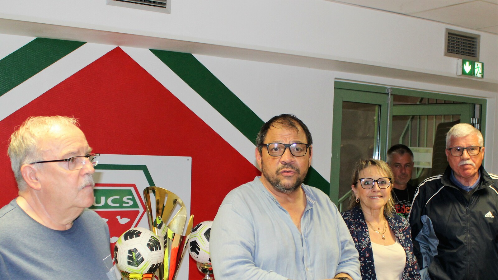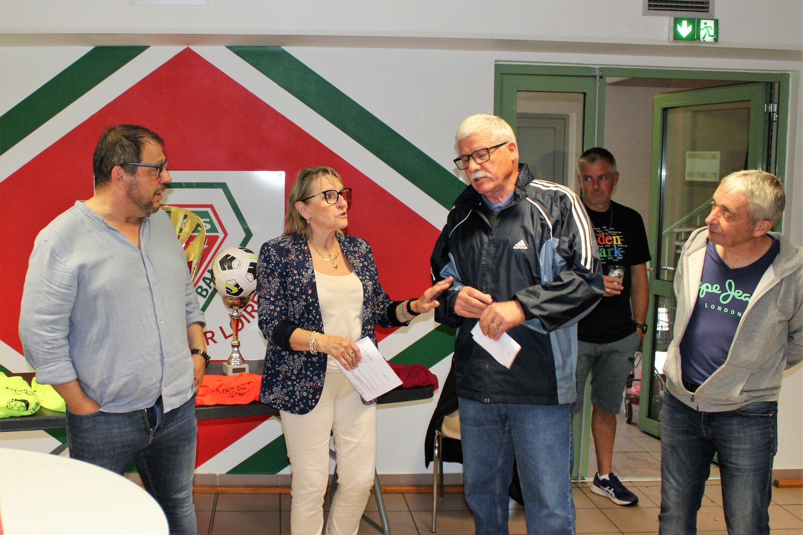 >>> photo >>> Madame Charlois a évoqué le souvenir de son mari, Alain, en présence de Christophe Marville, Président du club cosnois, et de Joseph Berforini, en charge au District de la Nièvre, de ce critérium vétérans >>>
