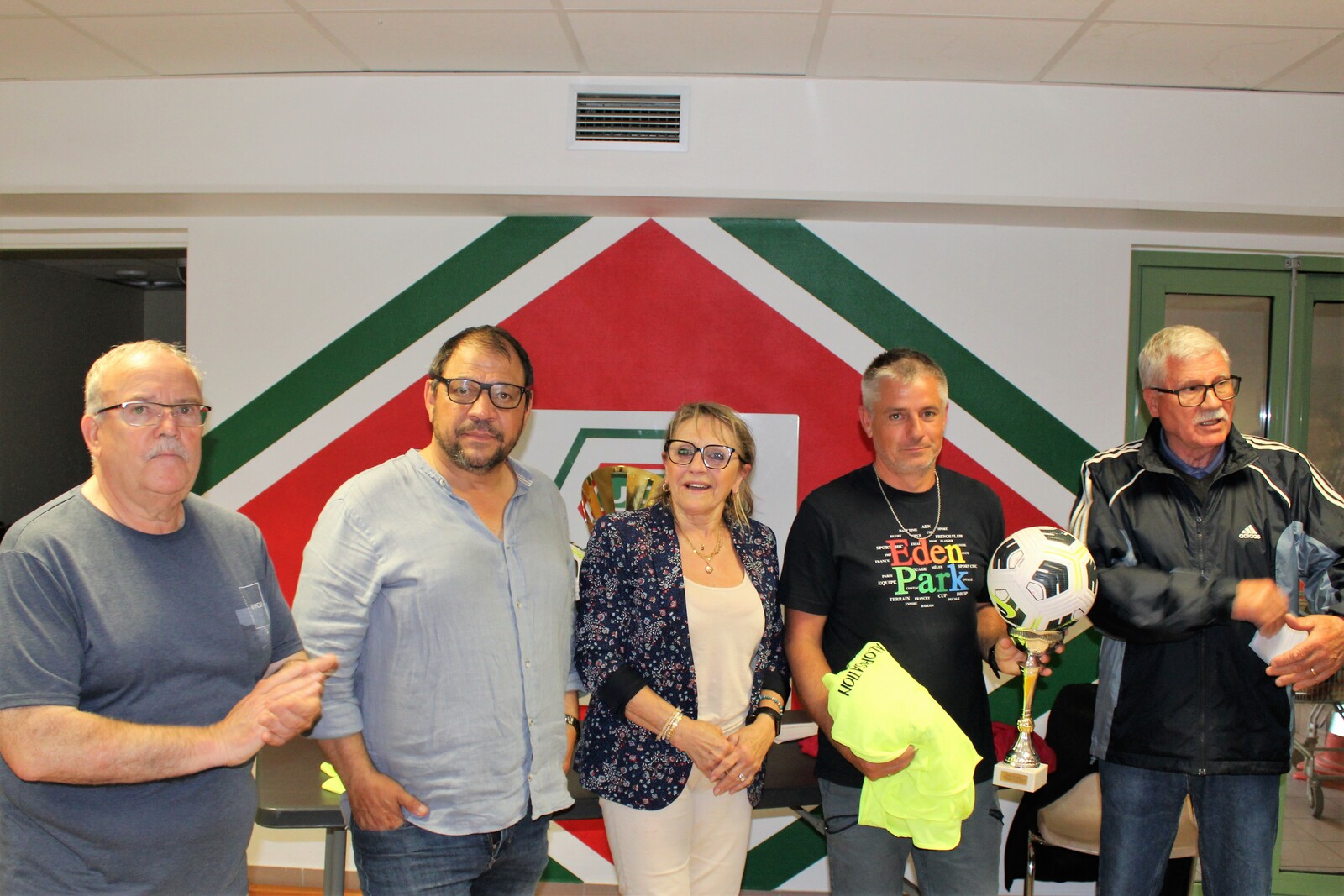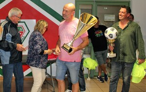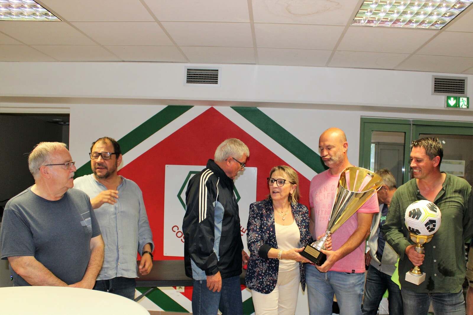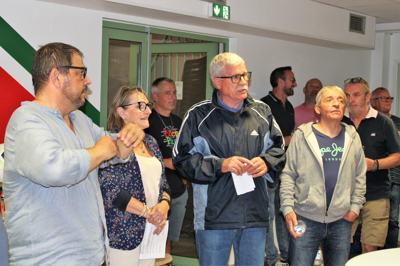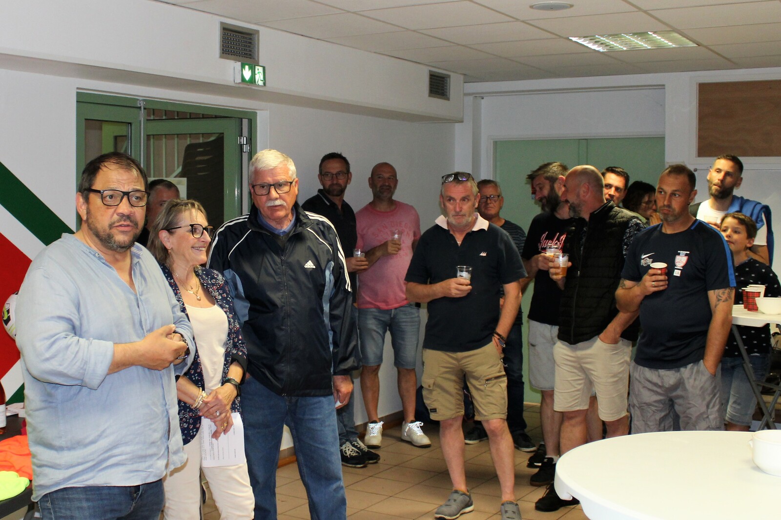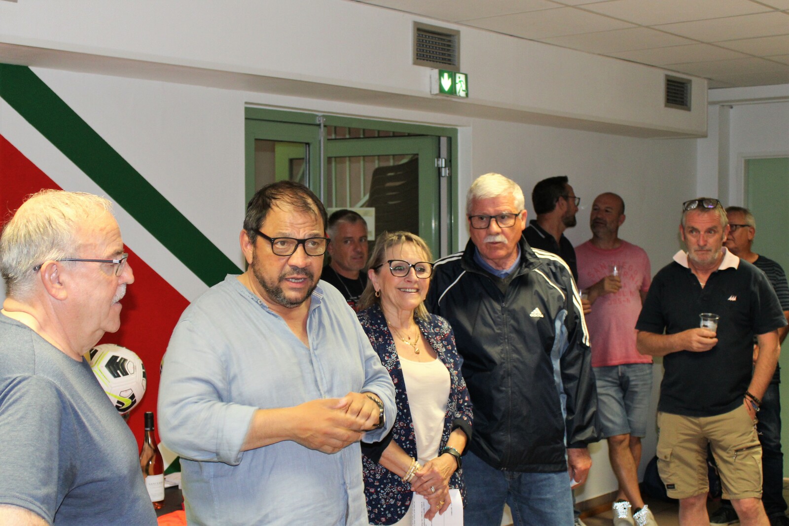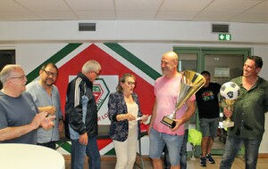 >>> photo >>> Madame Charlois a évoqué le souvenir de son mari, Alain, en présence de Christophe Marville, Président du club cosnois, et de Joseph Berforini, en charge au District de la Nièvre, de ce critérium vétérans >>>
