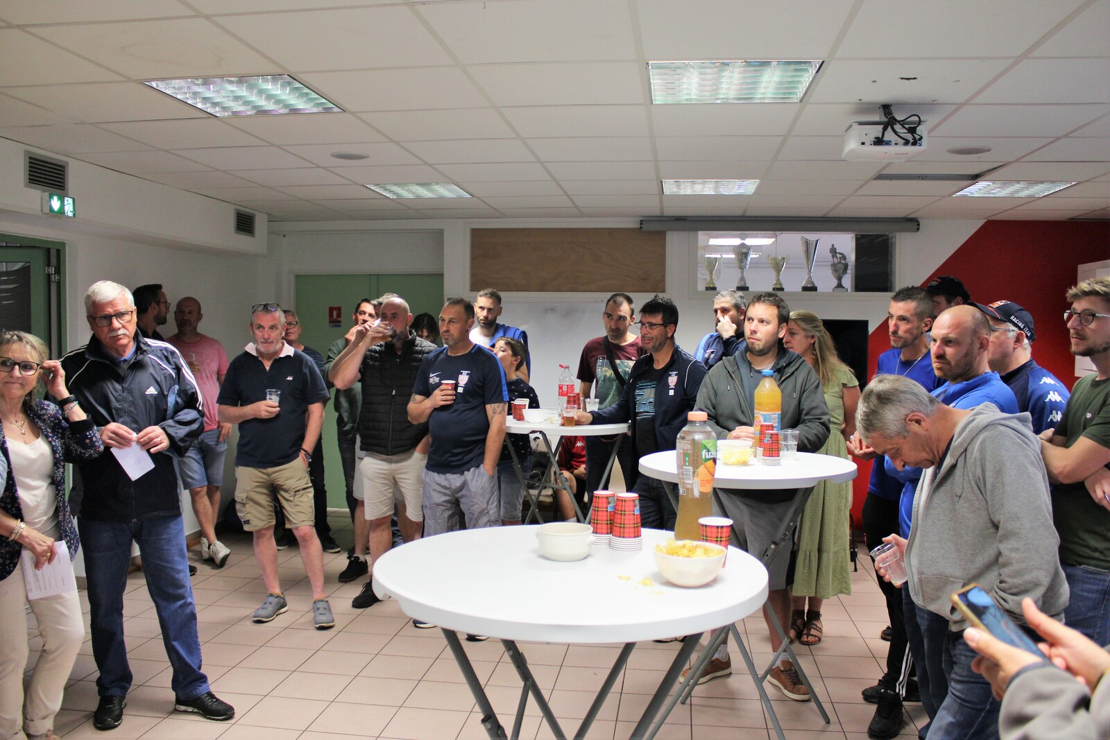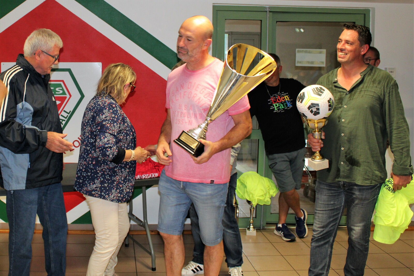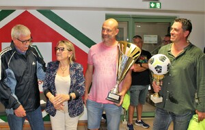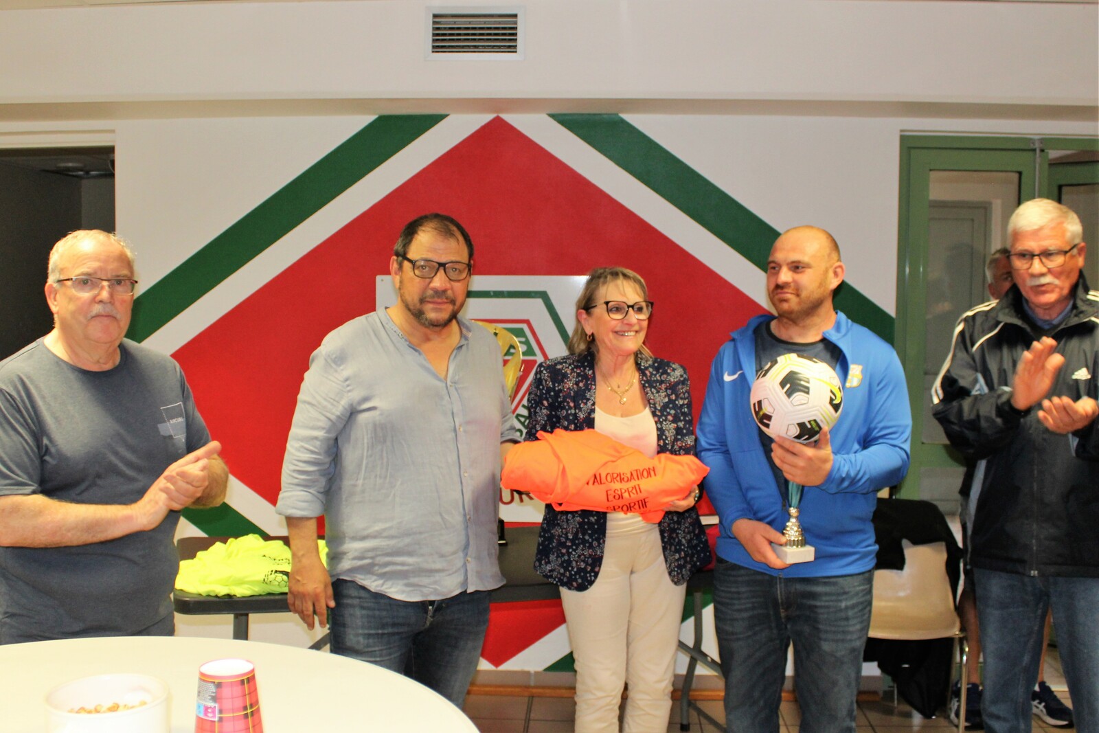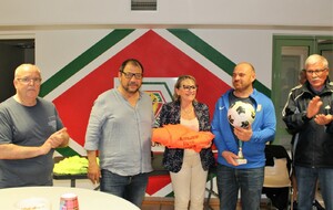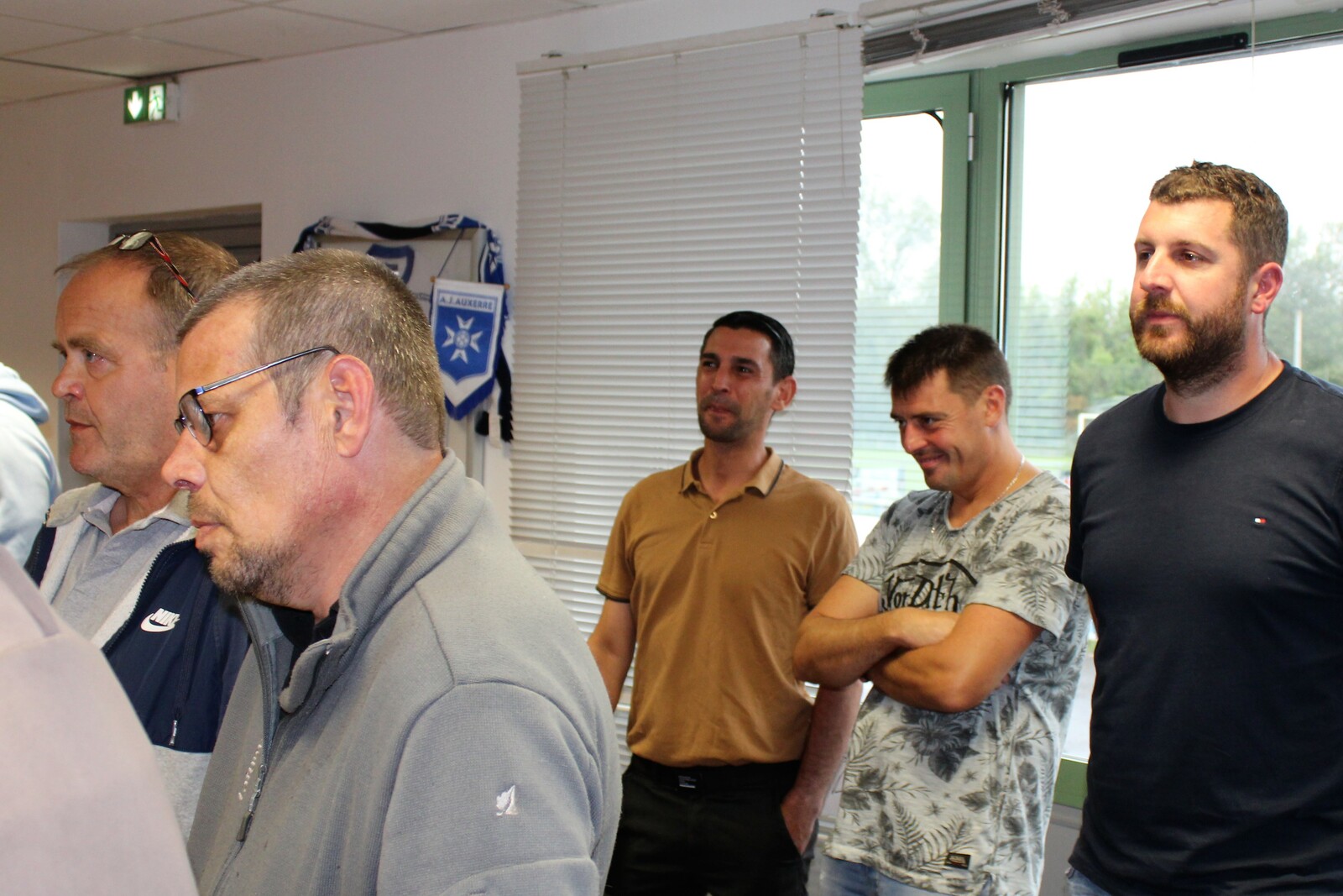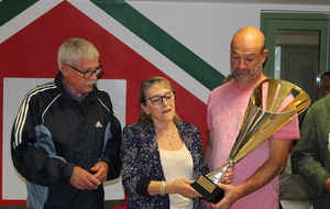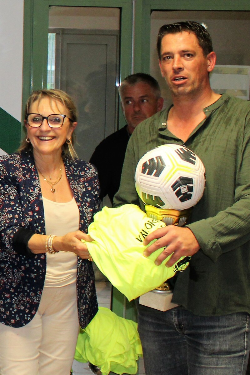 >>> photo >>> Madame Charlois a évoqué le souvenir de son mari, Alain, en présence de Christophe Marville, Président du club cosnois, et de Joseph Berforini, en charge au District de la Nièvre, de ce critérium vétérans >>>