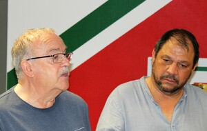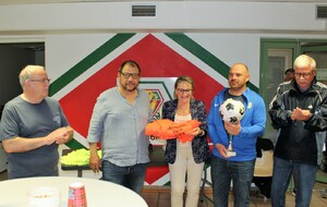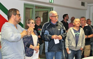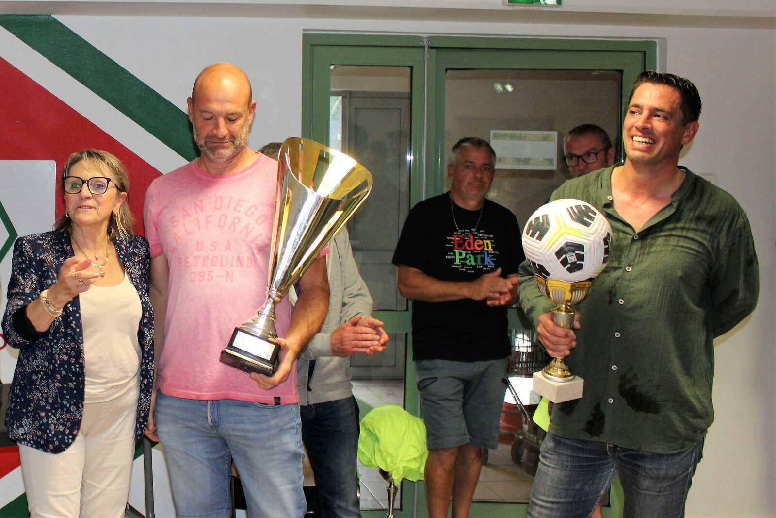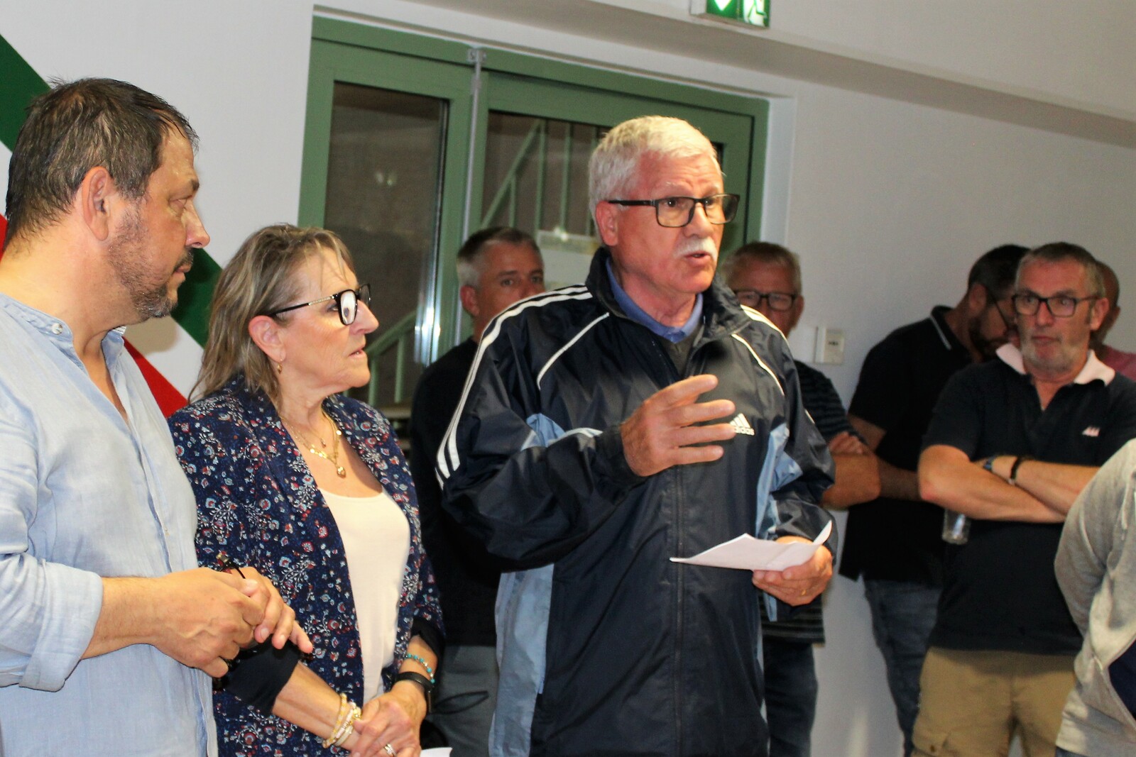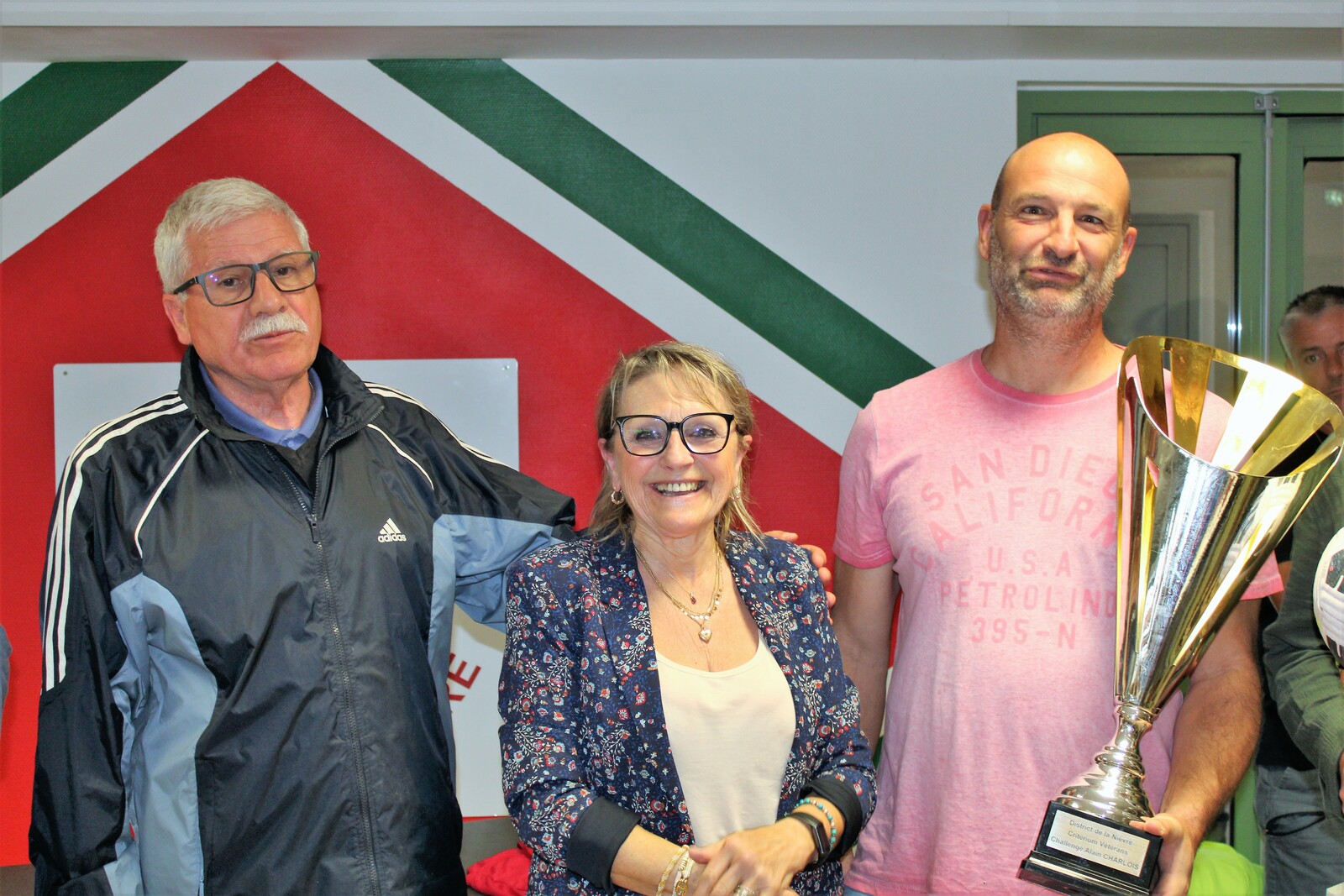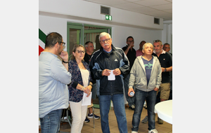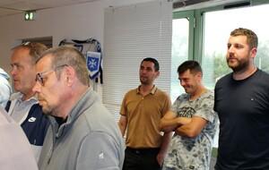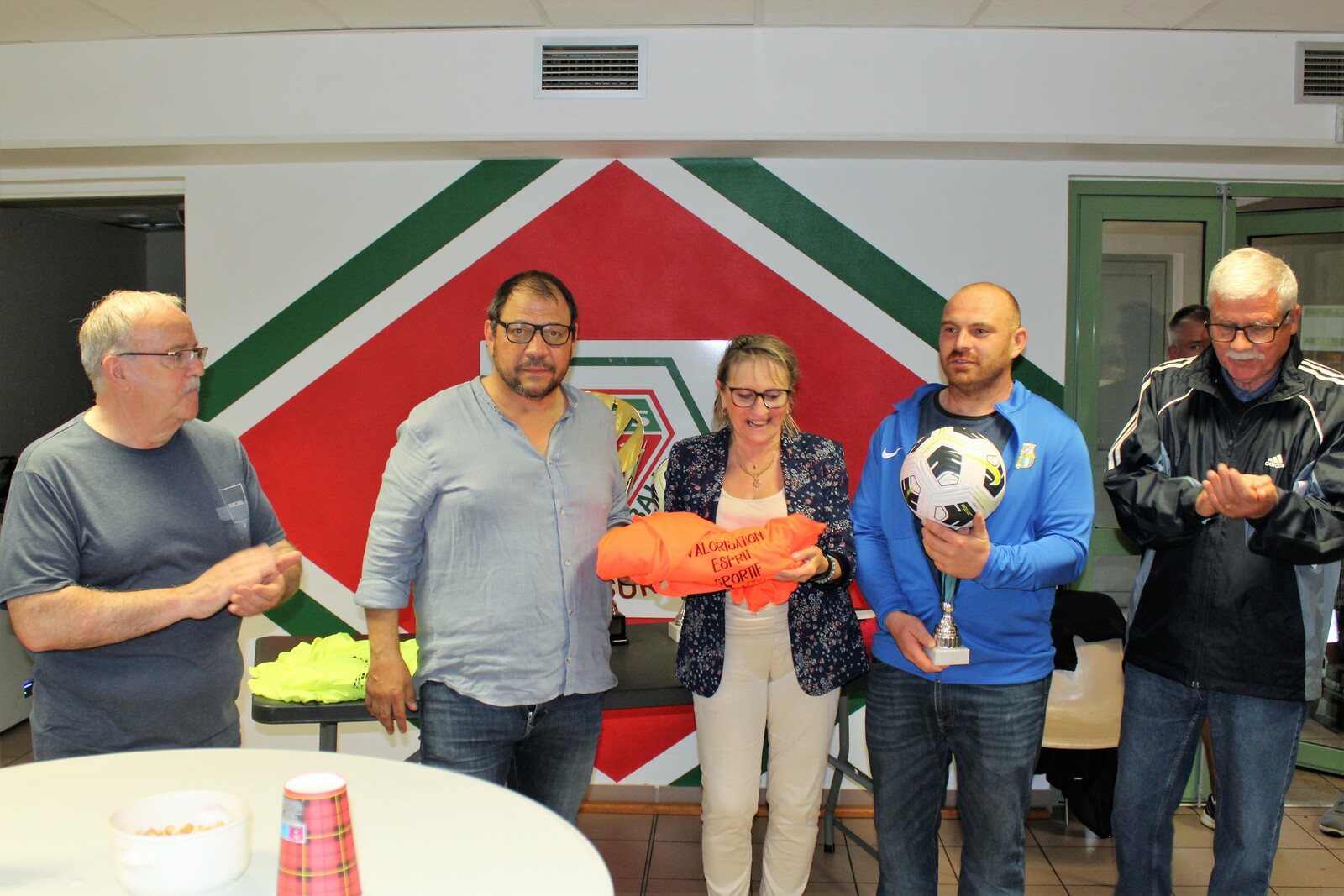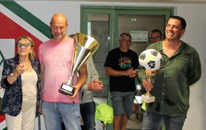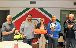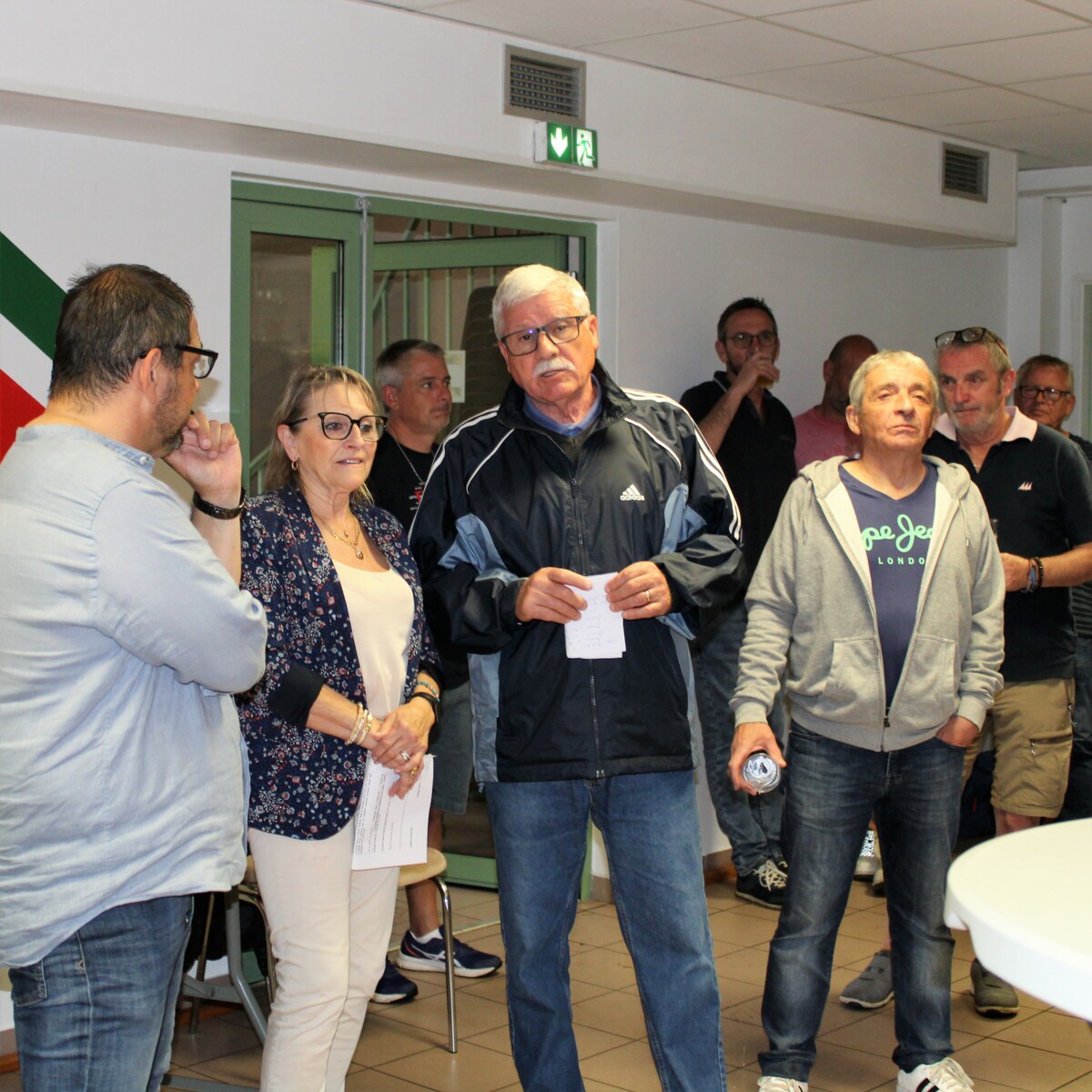 >>> photo >>> Madame Charlois a évoqué le souvenir de son mari, Alain, en présence de Christophe Marville, Président du club cosnois, et de Joseph Berforini, en charge au District de la Nièvre, de ce critérium vétérans >>>