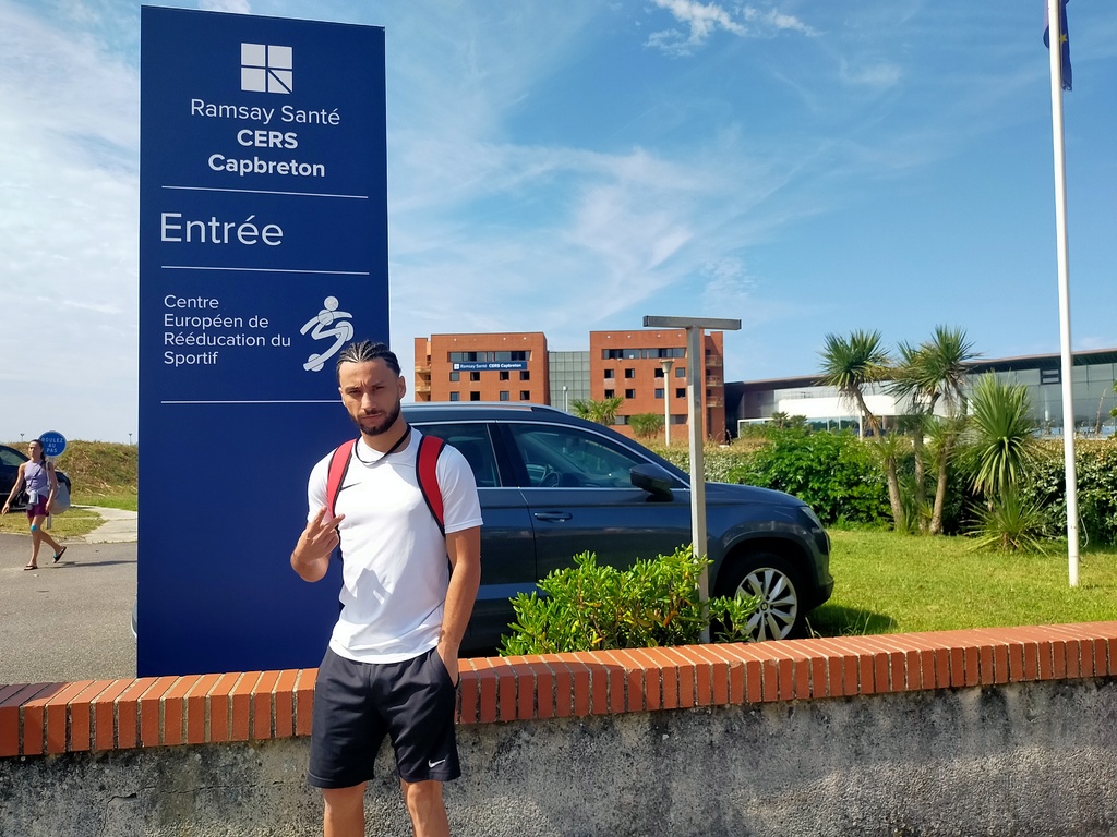 >>> photo >>> Victime d'une rupture des ligaments croisés lors de la rencontre contre JURA-DOLOIS le 13 mai dernier, Mattéo BERTHÉ, opéré fin juin, a commencé sa rééducation à CAPBRETON. Il sera l'un des grands absents d'une grande partie de la saison ! >>>