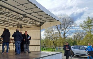 L'interruption quelques dizaines de minutes pour un passage orageux violent (voir photo) n'a pas entamé la bonne humeur et la ténacité des acteurs de dimanche...