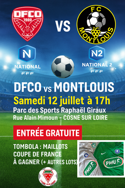 En effet, l'équipe 1 du Dijon FCO (National) sera opposée à la formation du FC Montlouis (National 2), que les cosnois connaissent fort bien puisque c'est ce club d'Indre-et-Loire qui a arraché son ticket d'accession à l'issue du championnat de National 3, où Cosne termina 3ème (derrière Montlouis et Chartres).
